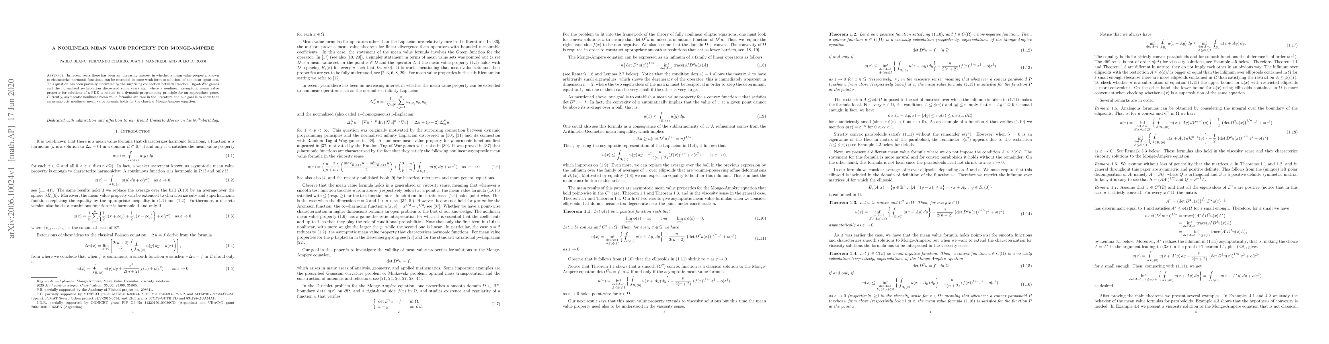 This paper investigates the existence of an asymptotic nonlinear mean value property for solutions of the classical Monge-Ampère equation, extending the mean value characterization known for harmonic functions to nonlinear equations. The study is motivated by connections between Random Tug-of-War games and the normalized $p$-Laplacian.