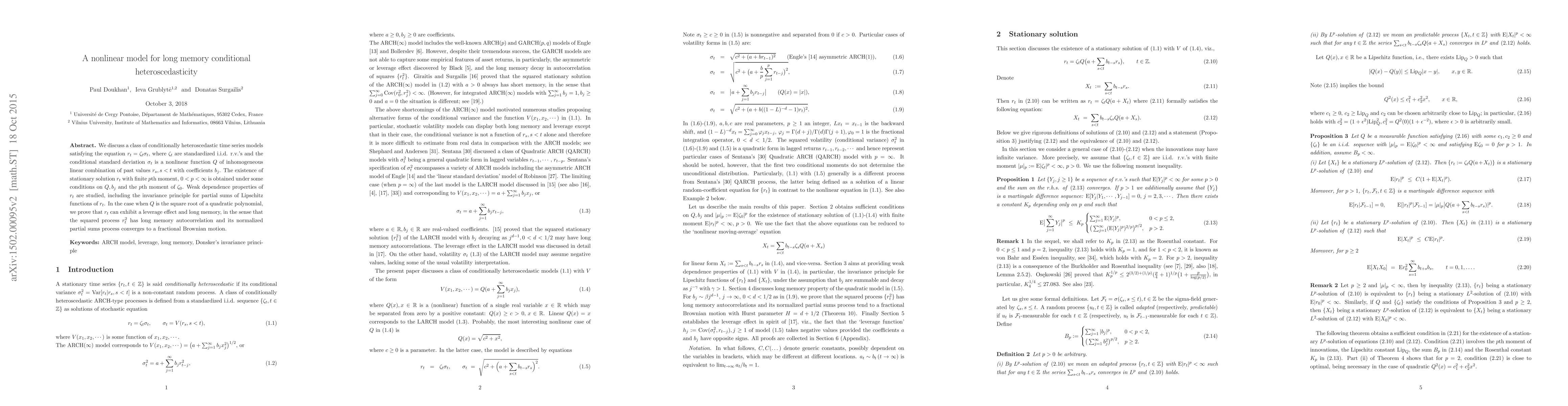 We discuss a class of conditionally heteroscedastic time series models