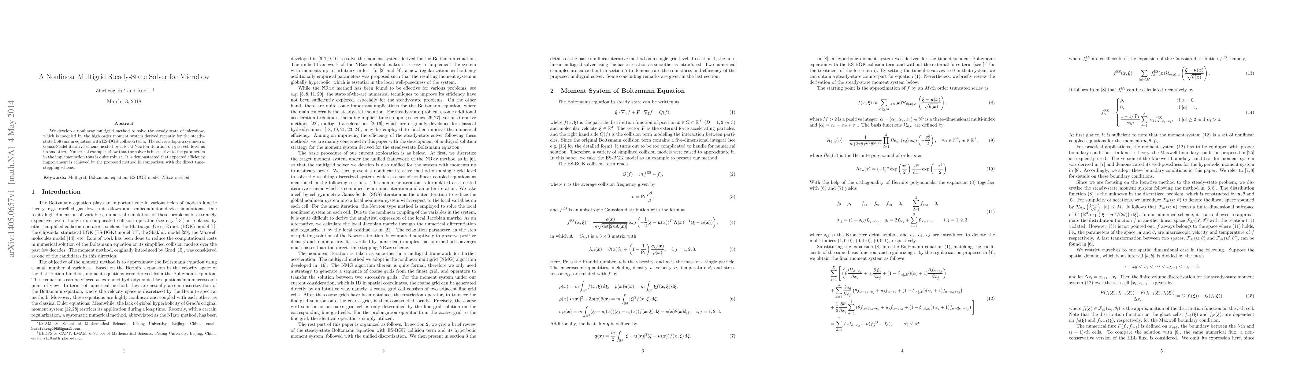 A new nonlinear multigrid method was developed to solve steady-state microflow problems with high accuracy and robustness. The method shows improved efficiency compared to traditional direct time-stepping schemes.