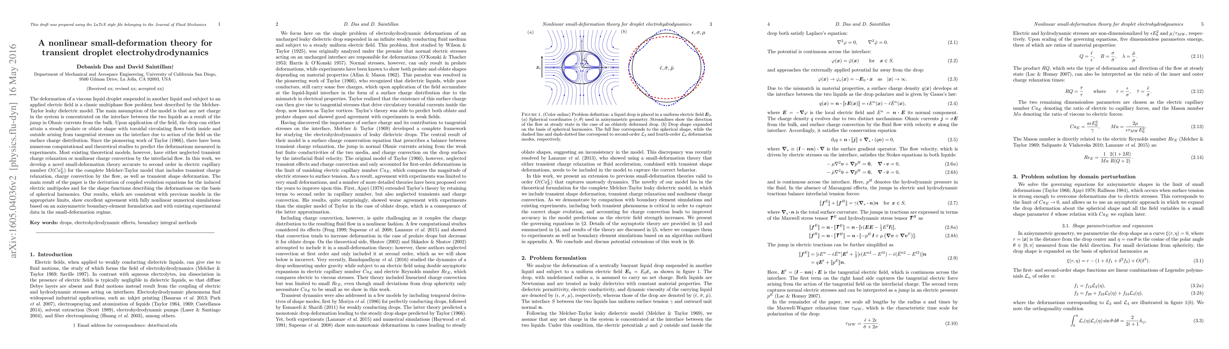 This paper develops a novel small-deformation theory for transient droplet electrohydrodynamics, incorporating transient charge relaxation and nonlinear charge convection. The theory provides coupled evolution equations for induced electric multipoles and shape deformations, showing agreement with numerical simulations and experimental data.