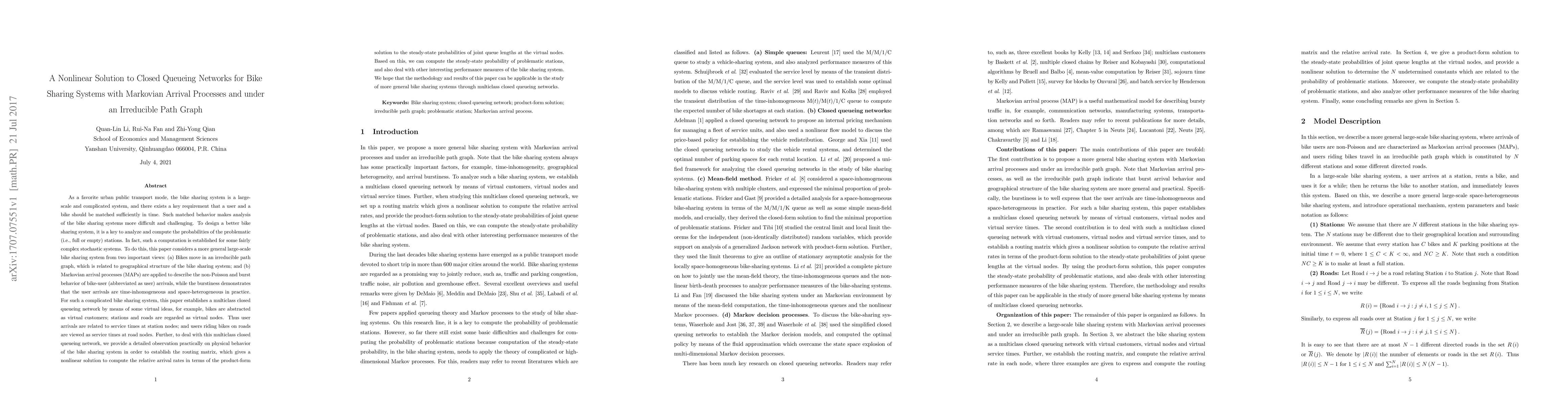 This work differs from existing research in its focus on the specific context of bike-sharing systems and its use of advanced mathematical techniques to model system behavior.