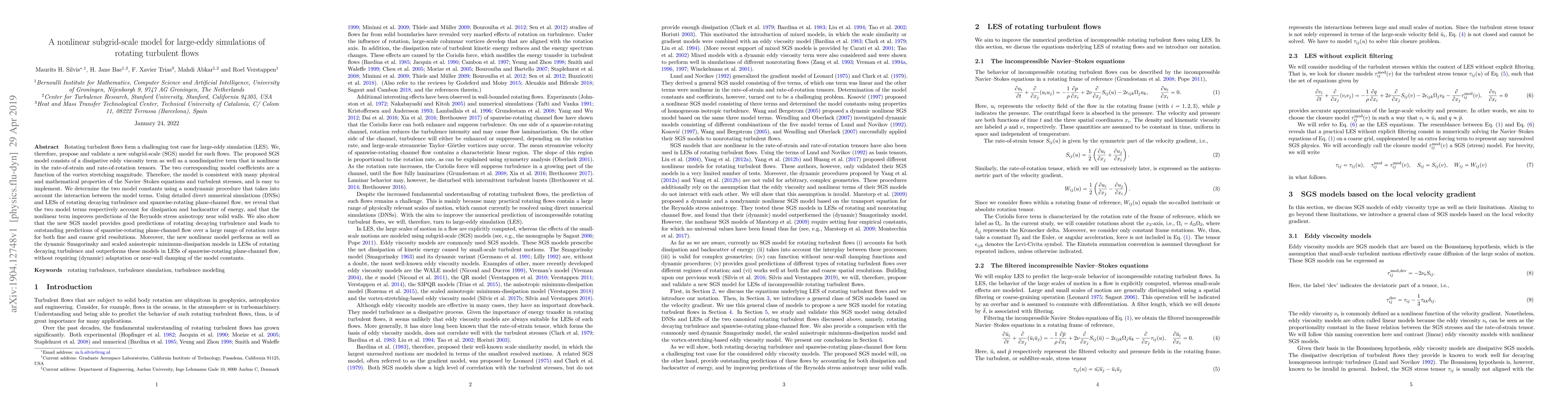 A new nonlinear subgrid-scale model improves predictions of rotating turbulent flows in large-eddy simulations, outperforming existing models without adaptation or near-wall damping.