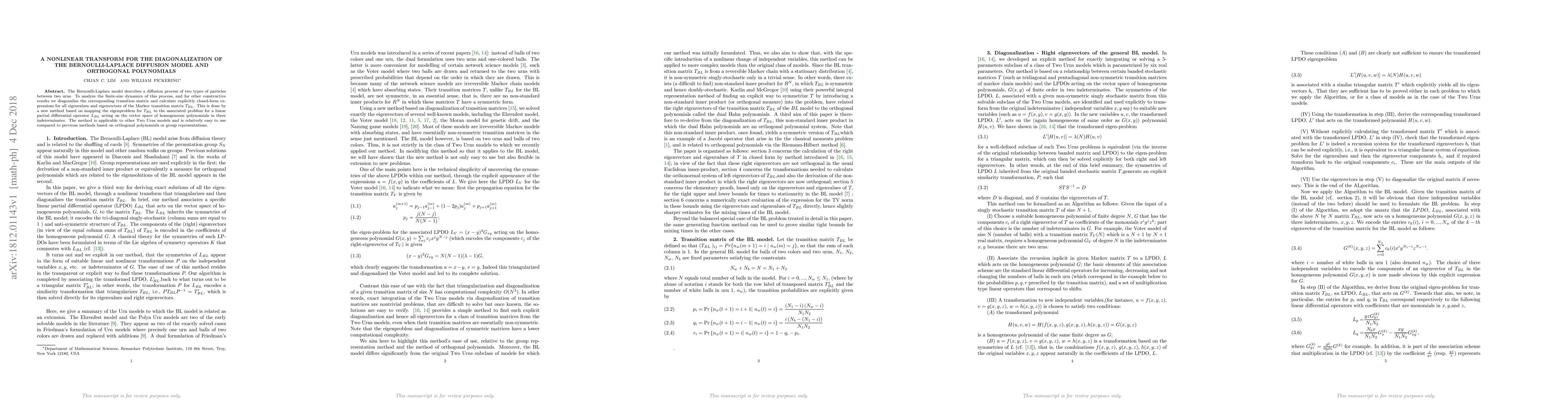 A new method is introduced to diagonalize the transition matrix of the Bernoulli-Laplace diffusion model, allowing for explicit closed-form expressions for eigenvalues and eigenvectors, with implications for analyzing finite-size dynamics and constructing other models.
