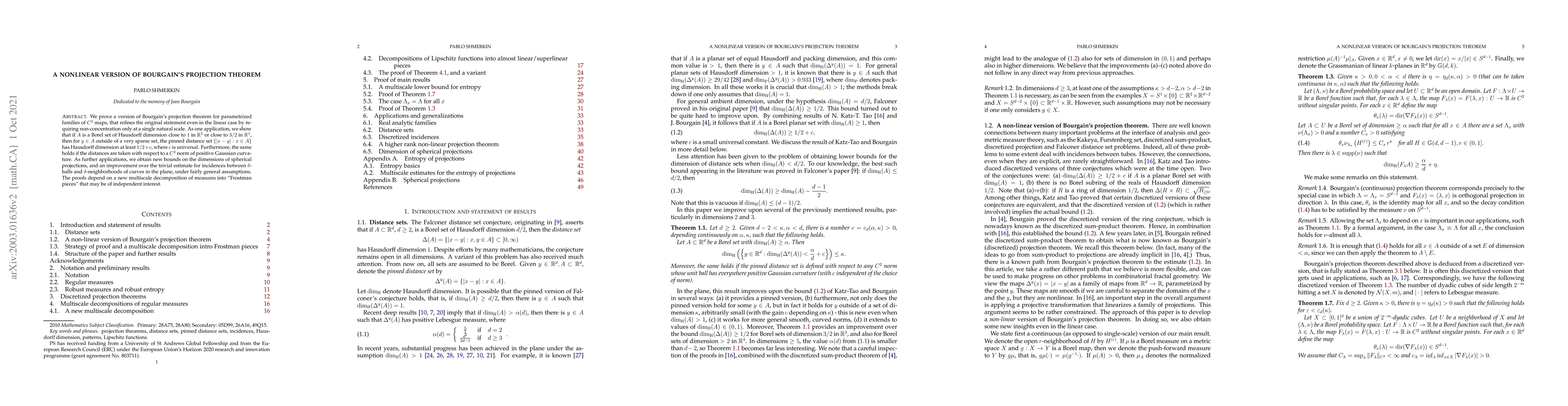 The paper introduces a nonlinear refinement of Bourgain's projection theorem, applying it to distance sets and spherical projections, extending existing results in the field.