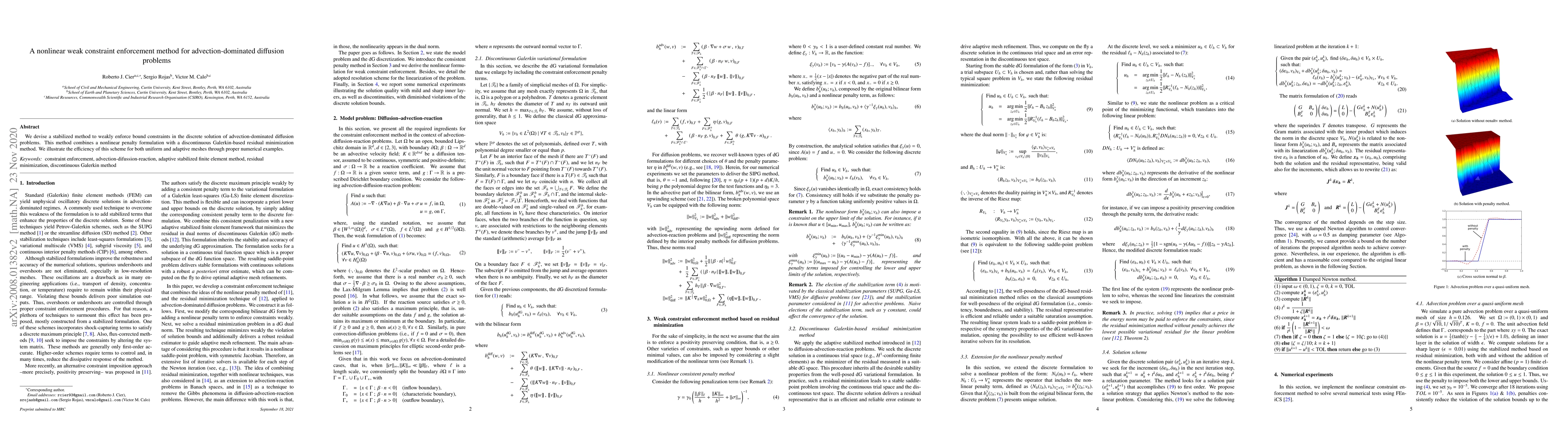 The paper introduces a nonlinear weak constraint enforcement method that combines a penalty formulation with a dG-based residual minimization approach for advection-dominated diffusion problems.