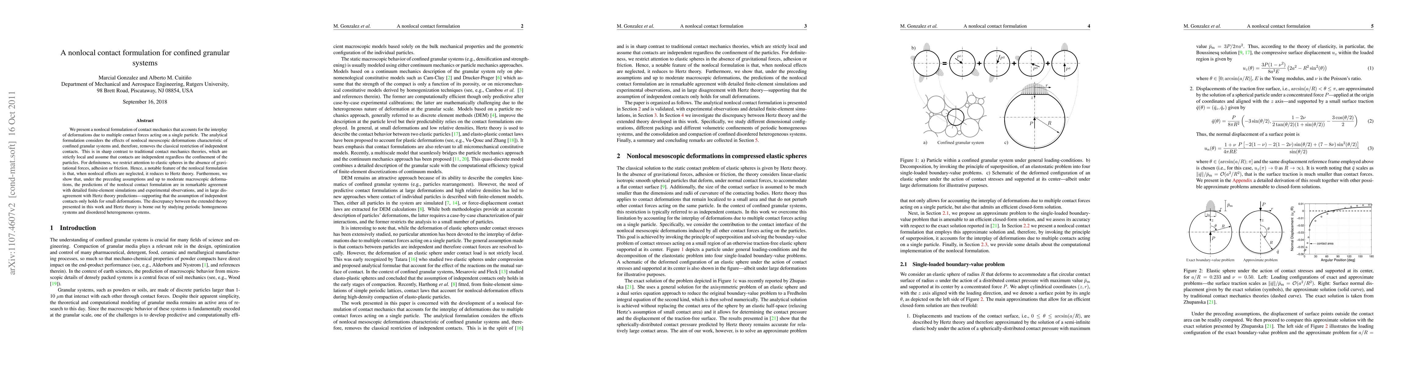 This paper introduces a nonlocal contact formulation for granular systems that considers the interplay of multiple contact forces on a single particle, contrasting traditional local contact mechanics. The new model accurately predicts deformations in confined granular systems, showing significant agreement with simulations and experiments, while diverging from Hertz theory predictions for moderate deformations.