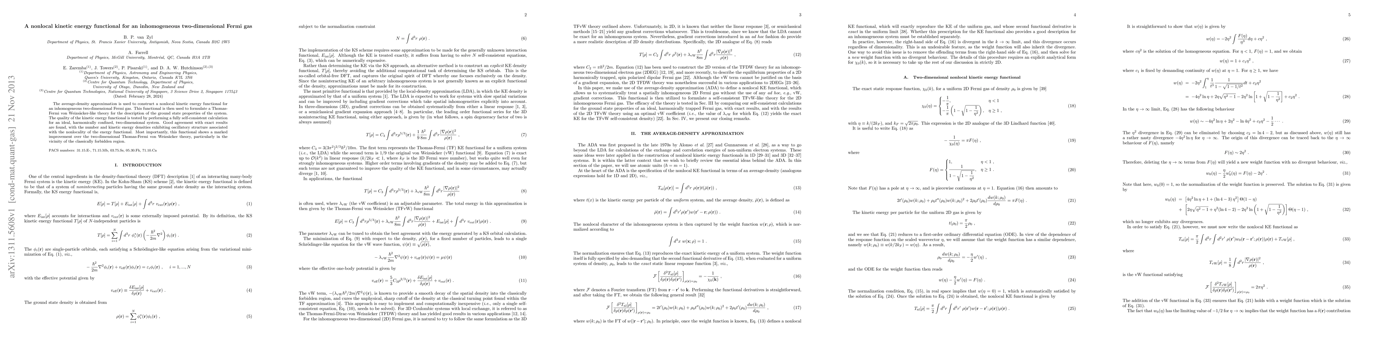 This paper constructs a nonlocal kinetic energy functional for an inhomogeneous two-dimensional Fermi gas using the average-density approximation, and applies it to a Thomas-Fermi von Weizsäcker-like theory. The functional shows significant improvement over traditional methods, especially near the classically forbidden region, as demonstrated by a self-consistent calculation on a harmonically confined system.