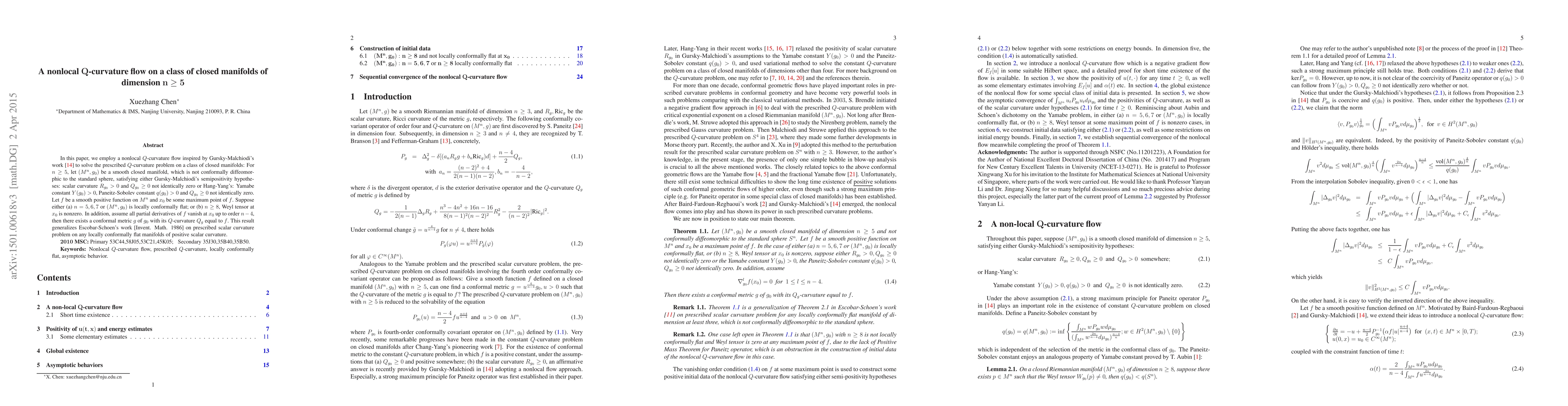In this paper, we employ a nonlocal $Q$-curvature flow inspired by Gursky-Malchiodi's work \cite{gur_mal} to solve the prescribed $Q$-curvature problem on a class of closed manifolds: For $n \geq 5$, let $(M^n,g_0)$ be a smooth closed manifold, which is not conformally diffeomorphic to the standard sphere, satisfying either Gursky-Malchiodi's semipositivity hypotheses: scalar curvature $R_{g_0}>0$ and $Q_{g_0} \geq 0$ not identically zero or Hang-Yang's: Yamabe constant $Y(g_0)>0$, Paneitz-Sobolev constant $q(g_0)>0$ and $Q_{g_0} \geq 0$ not identically zero. Let $f$ be a smooth positive function on $M^n$ and $x_0$ be some maximum point of $f$. Suppose either (a) $n=5,6,7$ or $(M^n,g_0)$ is locally conformally flat; or (b) $n \geq 8$, Weyl tensor at $x_0$ is nonzero. In addition, assume all partial derivatives of $f$ vanish at $x_0$ up to order $n-4$, then there exists a conformal metric $g$ of $g_0$ with its $Q$-curvature $Q_g$ equal to $f$. This result generalizes Escobar-Schoen's work [Invent. Math. 1986] on prescribed scalar curvature problem on any locally conformally flat manifolds of positive scalar curvature.