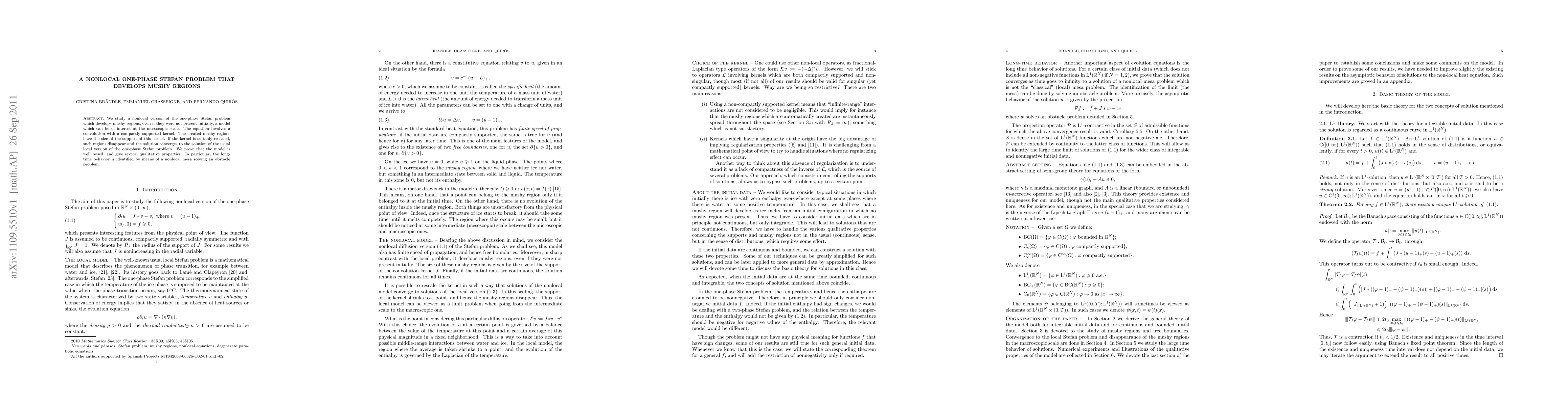 We study a nonlocal version of the one-phase Stefan problem which develops mushy regions, even if they were not present initially, a model which can be of interest at the mesoscopic scale. The equation involves a convolution with a compactly supported kernel. The created mushy regions have the size of the support of this kernel. If the kernel is suitably rescaled, such regions disappear and the solution converges to the solution of the usual local version of the one-phase Stefan problem. We prove that the model is well posed, and give several qualitative properties. In particular, the long-time behavior is identified by means of a nonlocal mesa solving an obstacle problem.