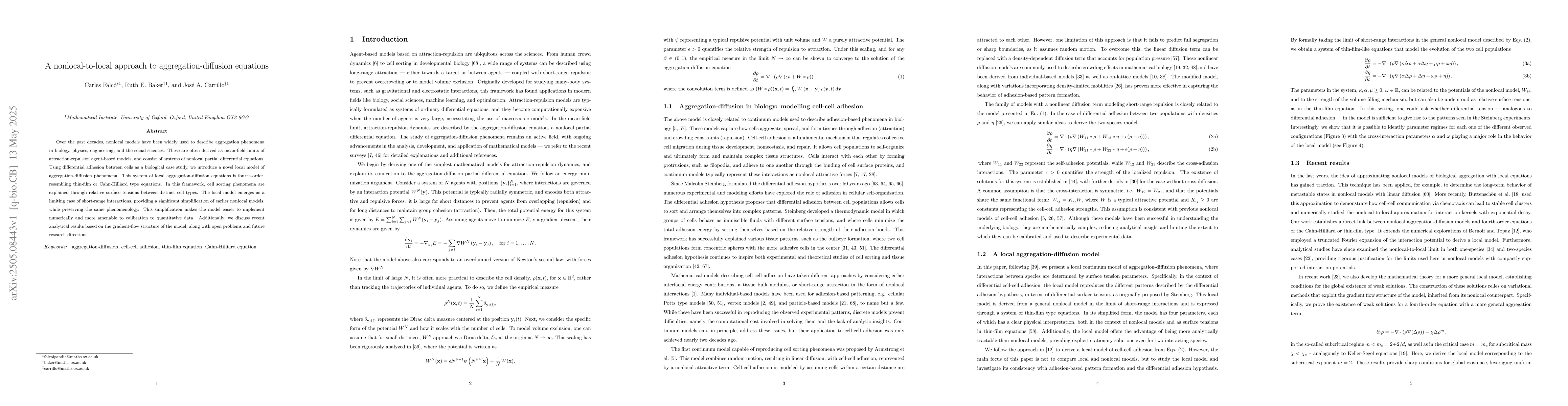 The paper presents a nonlocal-to-local approach, demonstrating how a local aggregation-diffusion model can emerge from nonlocal limits, simplifying complex agent-based models while retaining essential phenomenology.