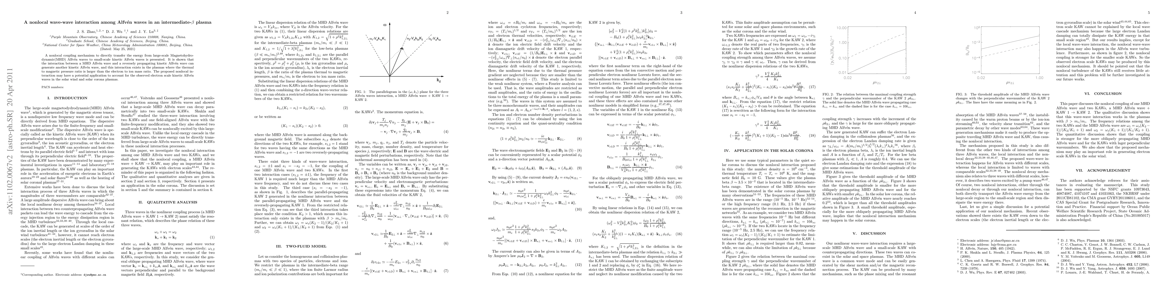 This paper presents a nonlocal wave-wave interaction mechanism that transfers energy from large-scale MHD Alfven waves to small-scale kinetic Alfven waves in intermediate-beta plasmas. The interaction between MHD Alfven and reversely propagating kinetic Alfven waves generates a new kinetic Alfven wave, potentially explaining observed electron scale waves in solar wind and corona plasmas.