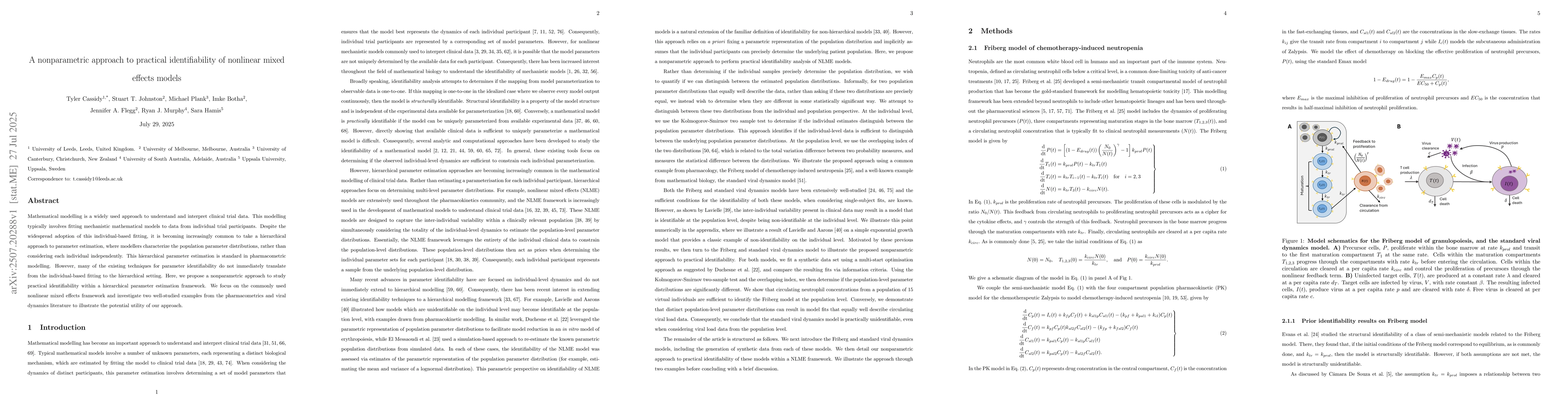 Mathematical modelling is a widely used approach to understand and interpret clinical trial data. This modelling typically involves fitting mechanistic mathematical models to data from individual trial participants. Despite the widespread adoption of this individual-based fitting, it is becoming increasingly common to take a hierarchical approach to parameter estimation, where modellers characterize the population parameter distributions, rather than considering each individual independently. This hierarchical parameter estimation is standard in pharmacometric modelling. However, many of the existing techniques for parameter identifiability do not immediately translate from the individual-based fitting to the hierarchical setting. Here, we propose a nonparametric approach to study practical identifiability within a hierarchical parameter estimation framework. We focus on the commonly used nonlinear mixed effects framework and investigate two well-studied examples from the pharmacometrics and viral dynamics literature to illustrate the potential utility of our approach.