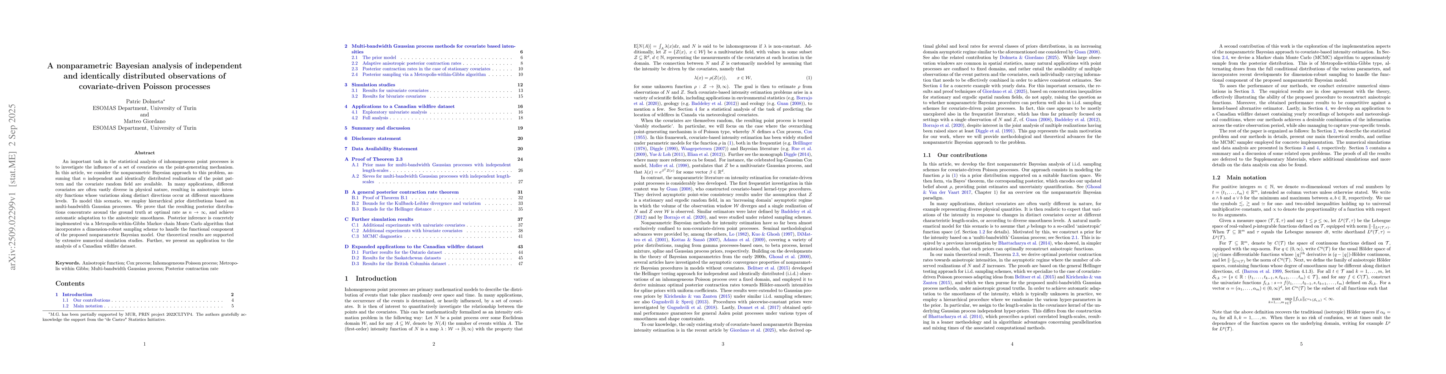 An important task in the statistical analysis of inhomogeneous point processes is to investigate the influence of a set of covariates on the point-generating mechanism. In this article, we consider the nonparametric Bayesian approach to this problem, assuming that $n$ independent and identically distributed realizations of the point pattern and the covariate random field are available. In many applications, different covariates are often vastly diverse in physical nature, resulting in anisotropic intensity functions whose variations along distinct directions occur at different smoothness levels. To model this scenario, we employ hierarchical prior distributions based on multi-bandwidth Gaussian processes. We prove that the resulting posterior distributions concentrate around the ground truth at optimal rate as $n\to\infty$, and achieve automatic adaptation to the anisotropic smoothness. Posterior inference is concretely implemented via a Metropolis-within-Gibbs Markov chain Monte Carlo algorithm that incorporates a dimension-robust sampling scheme to handle the functional component of the proposed nonparametric Bayesian model. Our theoretical results are supported by extensive numerical simulation studies. Further, we present an application to the analysis of a Canadian wildfire dataset.