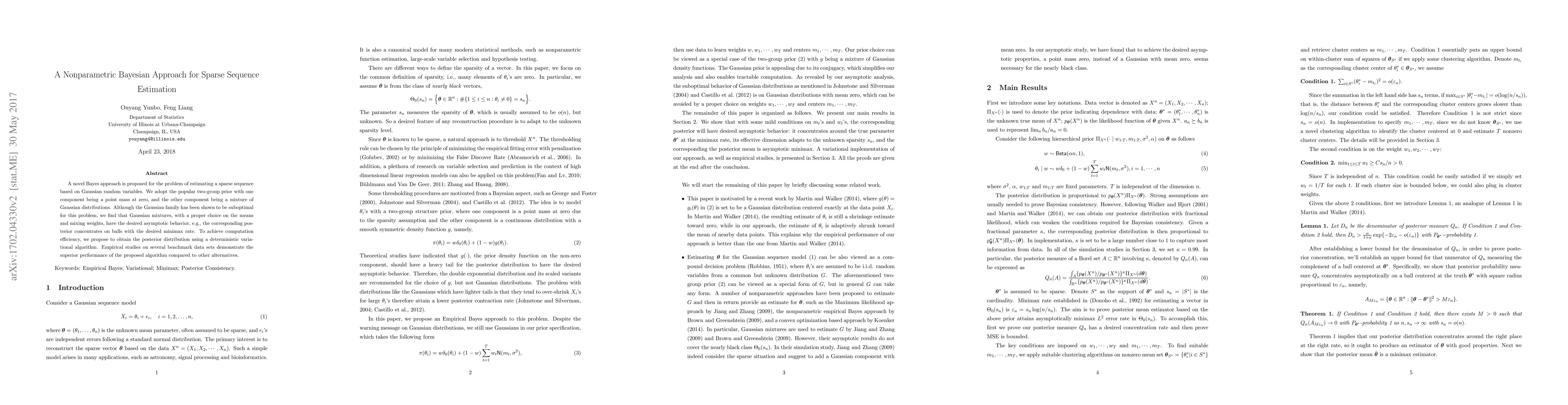 A nonparametric Bayes approach is proposed for the problem of estimating a sparse sequence based on Gaussian random variables. We adopt the popular two-group prior with one component being a point mass at zero, and the other component being a mixture of Gaussian distributions. Although the Gaussian family has been shown to be suboptimal for this problem, we find that Gaussian mixtures, with a proper choice on the means and mixing weights, have the desired asymptotic behavior, e.g., the corresponding posterior concentrates on balls with the desired minimax rate. To achieve computation efficiency, we propose to obtain the posterior distribution using a deterministic variational algorithm. Empirical studies on several benchmark data sets demonstrate the superior performance of the proposed algorithm compared to other alternatives.