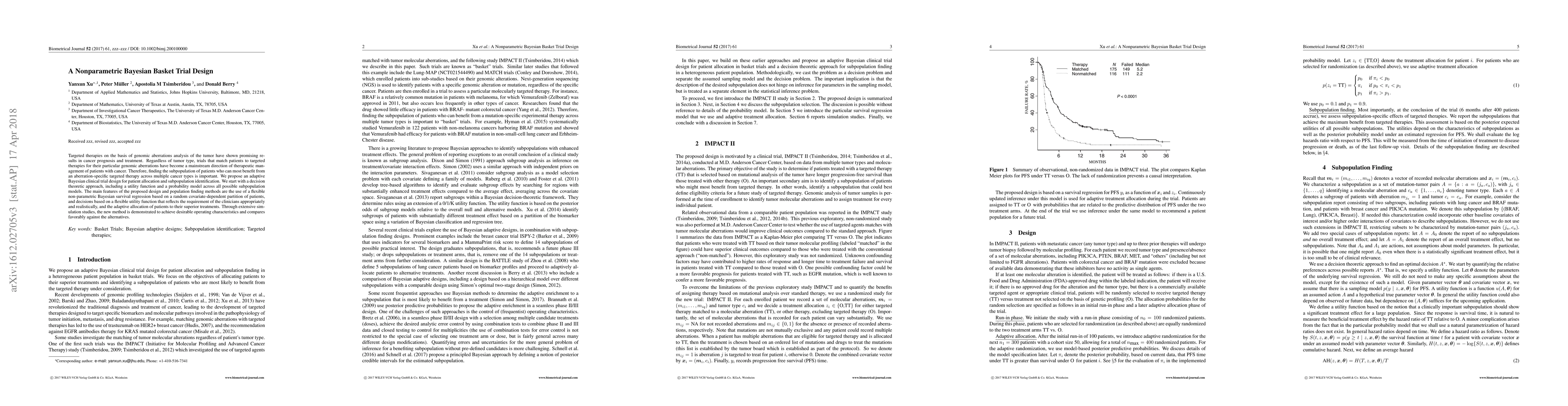 A new Bayesian clinical trial design is proposed to identify patients most benefiting from targeted therapies based on genomic aberrations analysis in cancer. The design uses adaptive allocation methods to optimize patient treatment assignments.