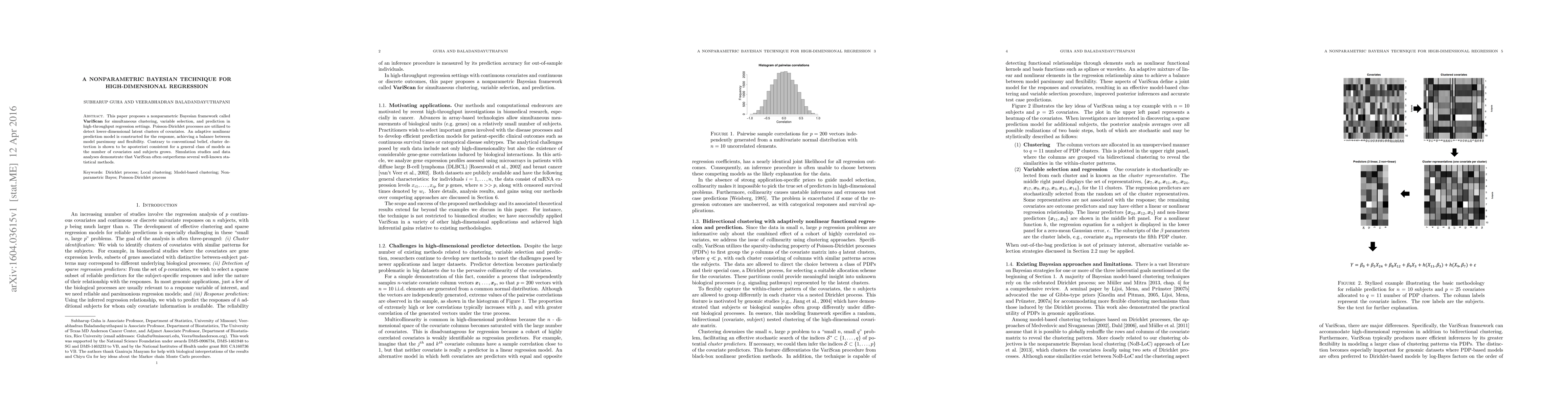 This paper introduces VariScan, a nonparametric Bayesian method for high-dimensional regression, utilizing Poisson-Dirichlet processes to cluster covariates and adaptively model responses. Simulation studies show VariScan outperforms other statistical methods.