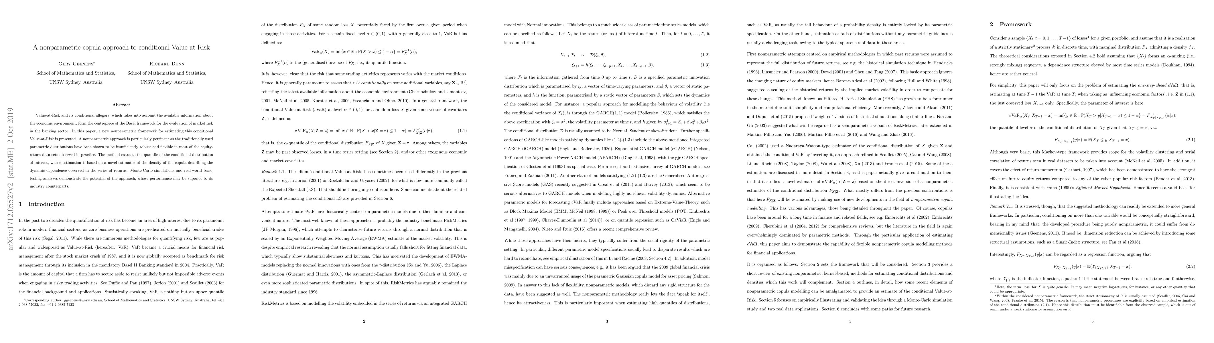 This paper introduces a nonparametric method for estimating conditional Value-at-Risk (CVaR) using copulas to capture dynamic dependence in equity-return data, offering a more robust alternative to traditional parametric models. Real-world back-testing indicates the proposed method may outperform existing industry practices.