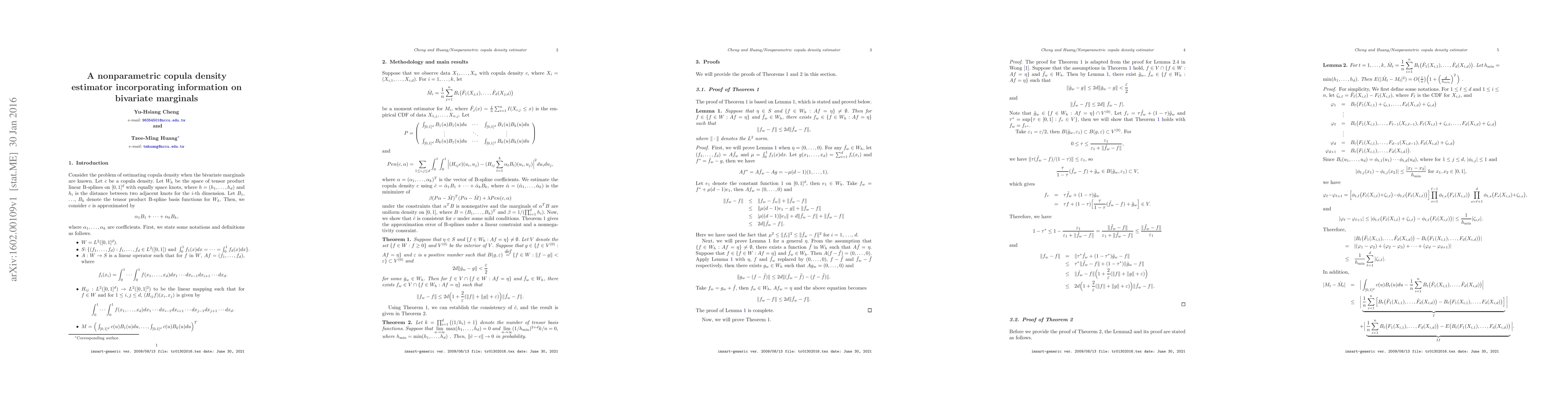 Summary: This paper introduces a copula density estimator that incorporates information on bivariate marginals using B-splines and a penalty term, ensuring it satisfies copula density constraints and demonstrating consistency under mild conditions.