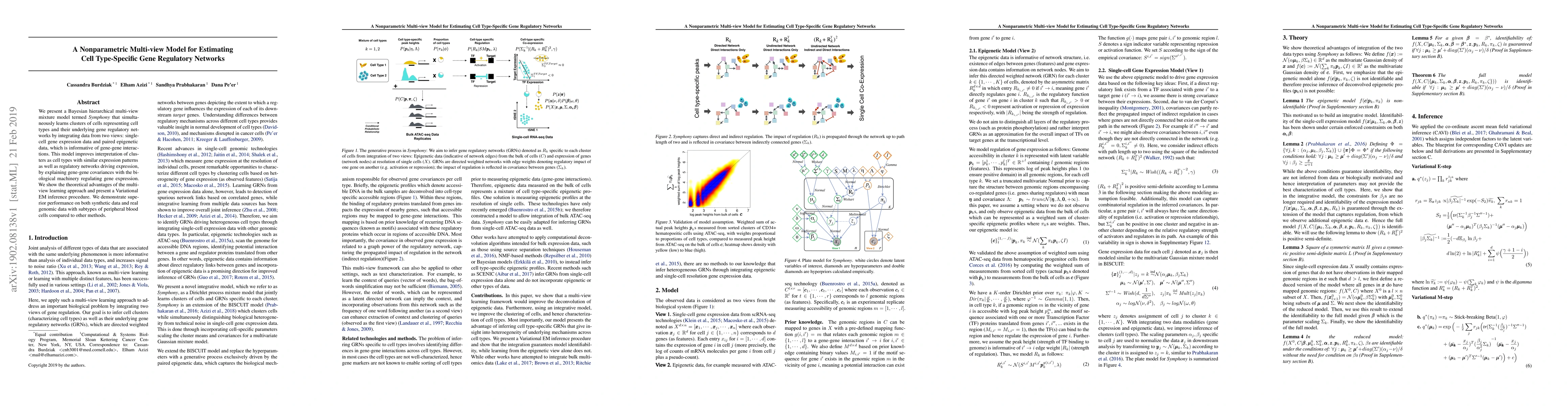 This paper introduces Symphony, a Bayesian hierarchical multi-view mixture model that integrates single-cell gene expression and epigenetic data to infer cell type-specific gene regulatory networks. The model demonstrates superior performance in interpreting gene regulatory networks and cell type clusters compared to other methods.