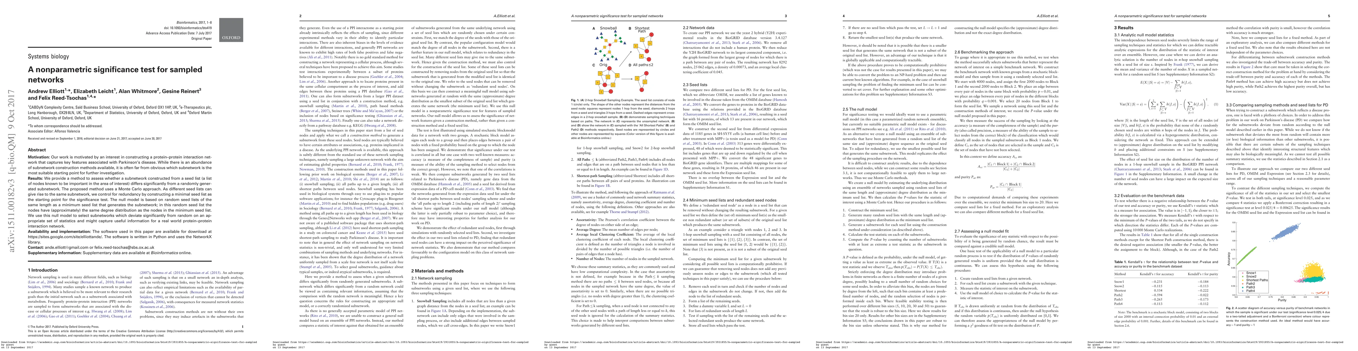 Our work is motivated by an interest in constructing a protein-protein interaction network that captures key features associated with Parkinson's disease. While there is an abundance of subnetwork construction methods available, it is often far from obvious which subnetwork is the most suitable starting point for further investigation. We provide a method to assess whether a subnetwork constructed from a seed list (a list of nodes known to be important in the area of interest) differs significantly from a randomly generated subnetwork. The proposed method uses a Monte Carlo approach. As different seed lists can give rise to the same subnetwork, we control for redundancy by constructing a minimal seed list as the starting point for the significance test. The null model is based on random seed lists of the same length as a minimum seed list that generates the subnetwork, in this random seed list the nodes have (approximately) the same degree distribution as the nodes in the minimum seed list. We use this null model to select subnetworks which deviate significantly from random on an appropriate set of statistics and might capture useful information for a real world protein-protein interaction network.