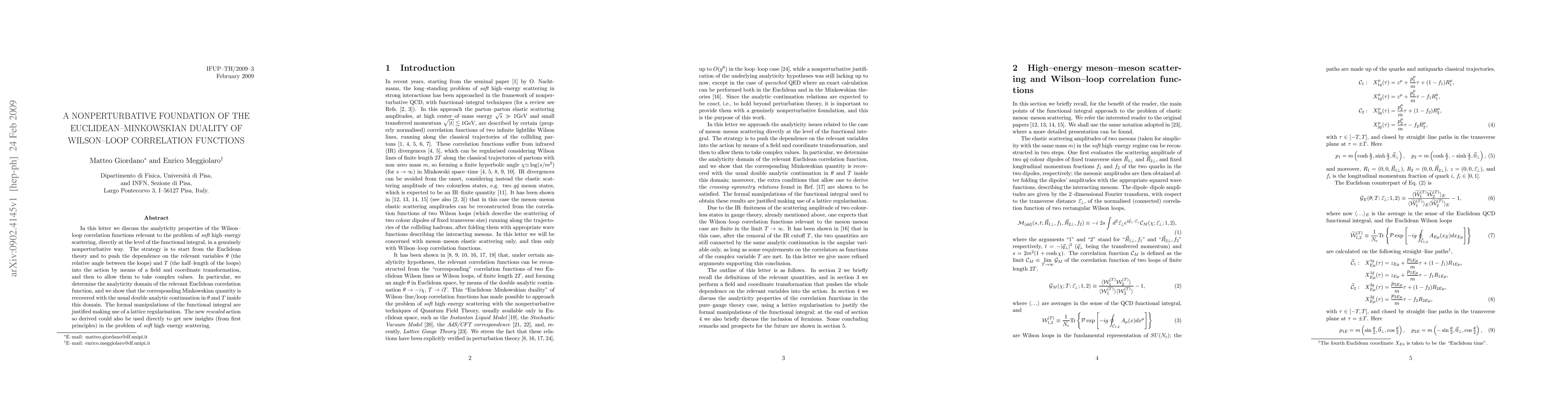 This paper establishes a nonperturbative foundation for the Euclidean-Minkowskian duality of Wilson-loop correlation functions by analyzing the analyticity properties directly from the functional integral. It employs a field and coordinate transformation to derive a new rescaled action, which provides insights into soft high-energy scattering.