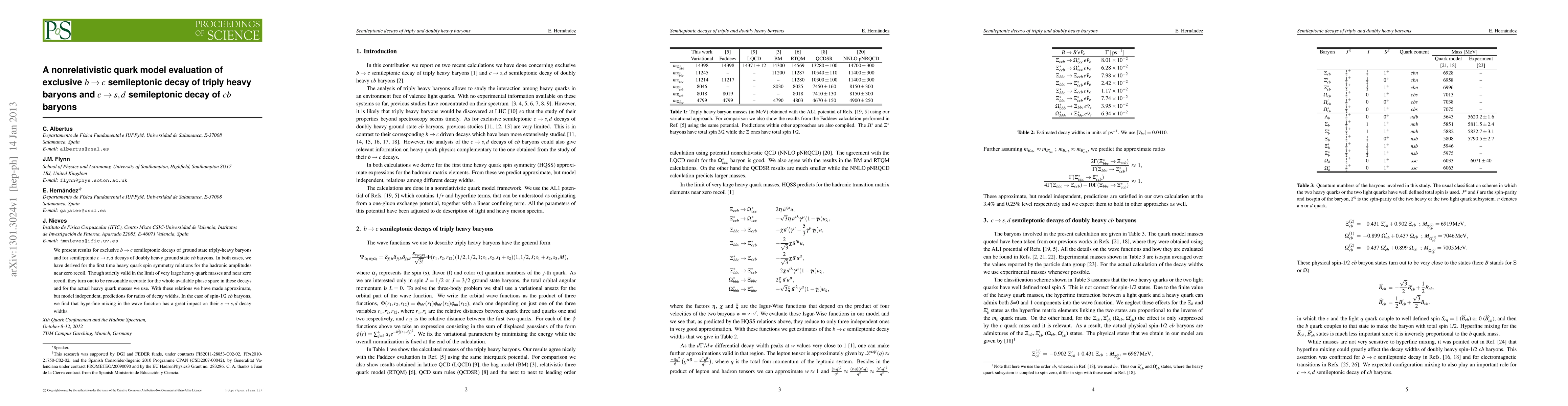 We present results for exclusive $b\to c$ semileptonic decays of ground state triply-heavy baryons and for semileptonic $c\to s,d$ decays of doubly heavy ground state $cb$ baryons. In both cases, we have derived for the first time heavy quark spin symmetry relations for the hadronic amplitudes near zero recoil. Though strictly valid in the limit of very large heavy quark masses and near zero recoil, they turn out to be reasonable accurate for the whole available phase space in these decays and for the actual heavy quark masses we use. With these relations we have made approximate, but model independent, predictions for ratios of decay widths. In the case of spin-1/2 $cb$ baryons, we find that hyperfine mixing in the wave function has a great impact on their $c\to s,d$ decay widths.