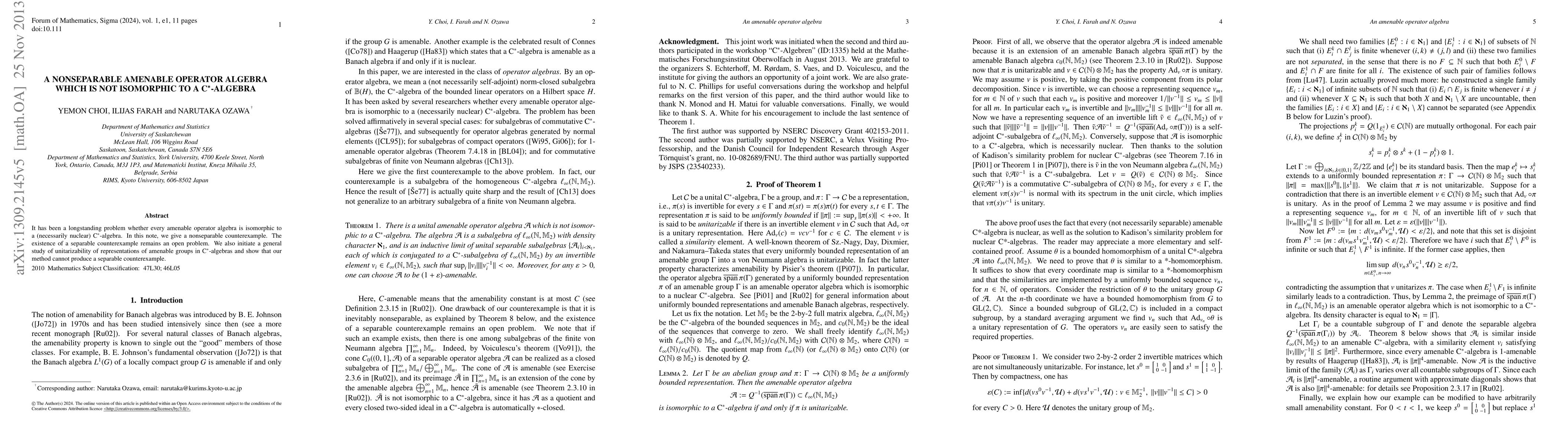 It has been a longstanding problem whether every amenable operator algebra is isomorphic to a (necessarily nuclear) C*-algebra. In this note, we give a nonseparable counterexample. The existence of a separable counterexample remains an open problem. We also initiate a general study of unitarizability of representations of amenable groups in C*-algebras and show that our method cannot produce a separable counterexample.