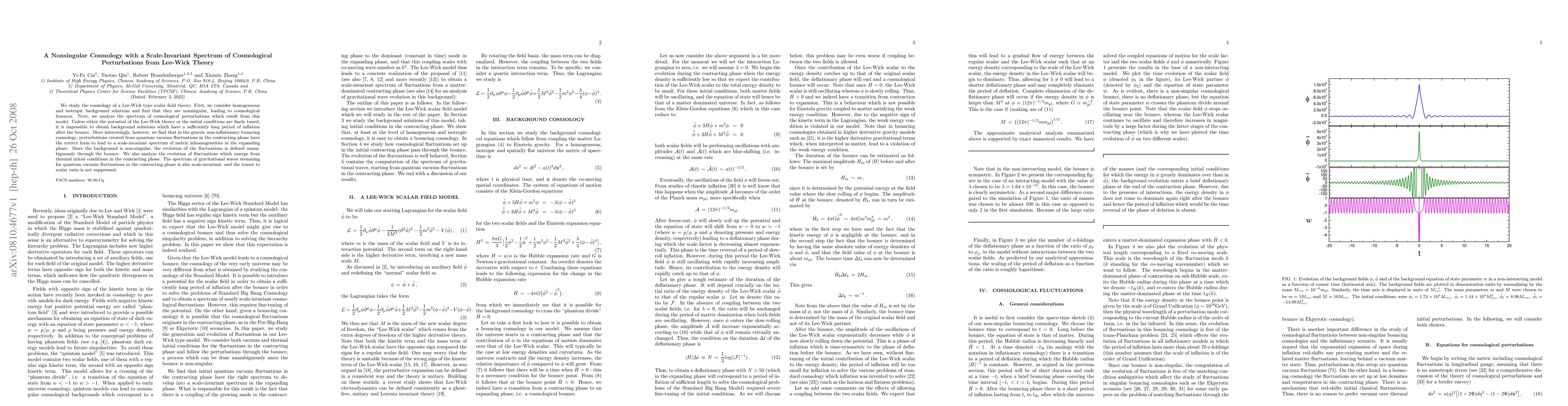 This paper explores a nonsingular cosmology with a scale-invariant spectrum of cosmological perturbations derived from Lee-Wick scalar field theory, showing that it naturally leads to a bounce without inflation and produces a scale-invariant spectrum of metric inhomogeneities and gravitational waves.