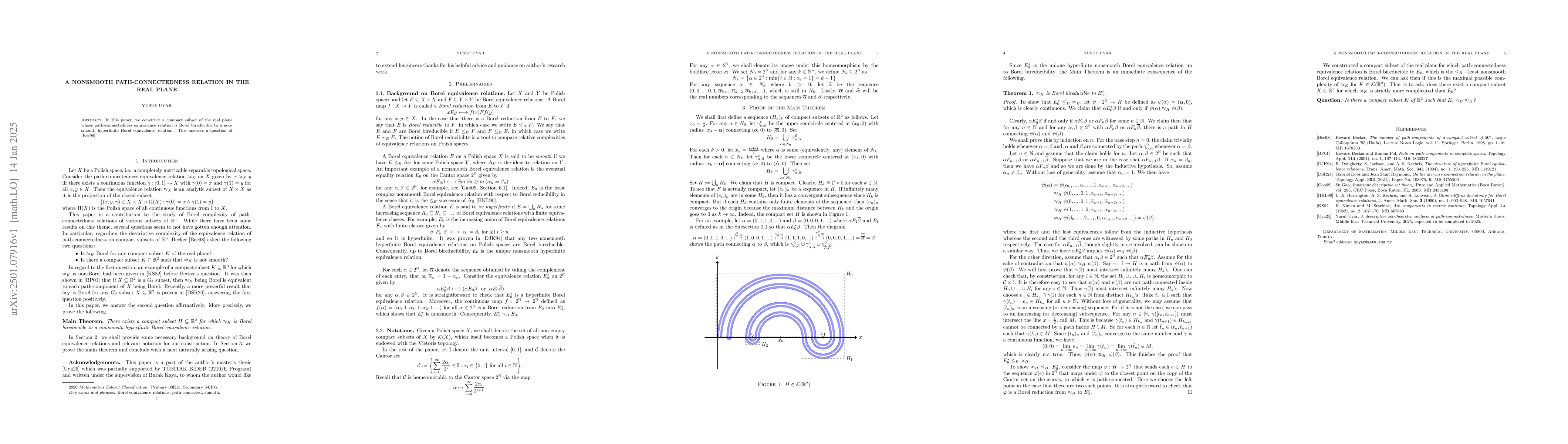 This paper constructs a compact subset of the real plane with a path-connectedness equivalence relation that is Borel bireducible to a nonsmooth hyperfinite Borel equivalence relation, resolving a question posed in \cite{bec98}.
