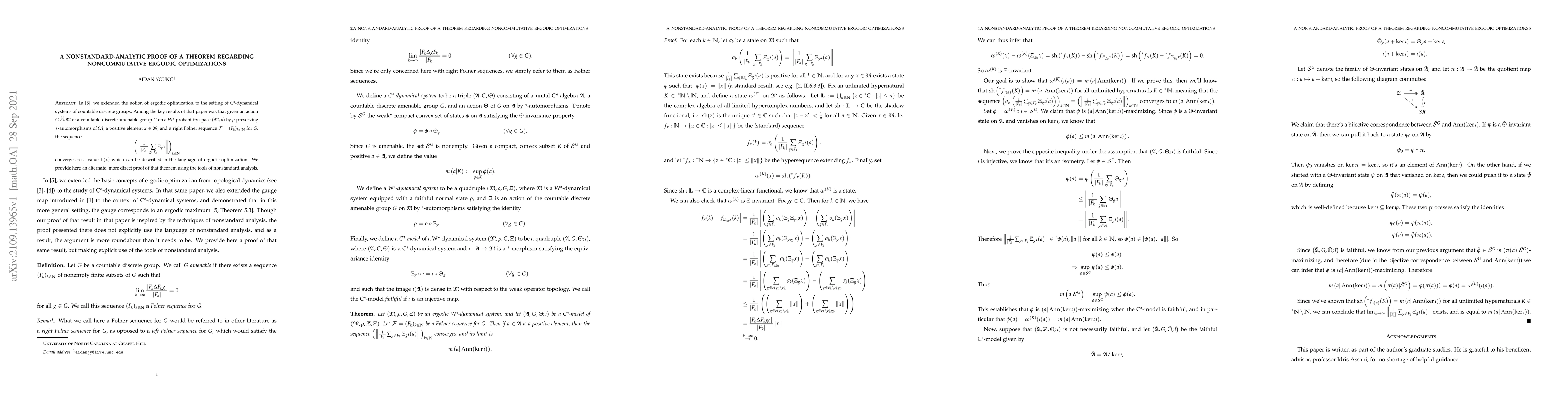 This research paper provides a nonstandard-analytic proof of a theorem regarding noncommutative ergodic optimization in C*-dynamical systems, offering an alternate solution using tools from nonstandard analysis.