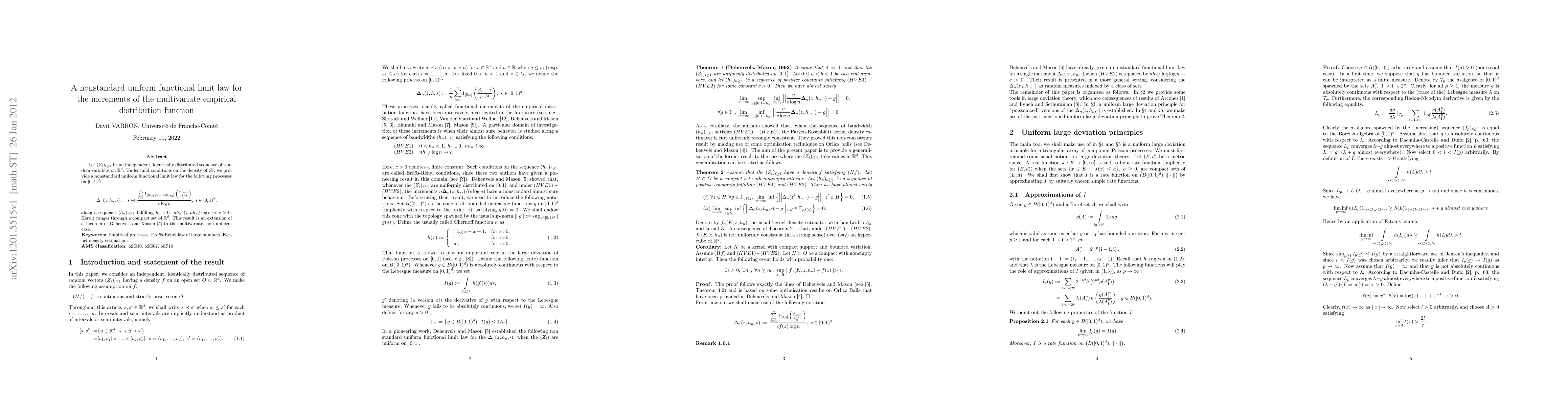 Let $(Z_i)_{i\geq 1}$ be an independent, identically distributed sequence of random variables on $\RRR^d$. Under mild conditions on the density of $Z_1$, we provide a nonstandard uniform functional limit law for the following processes on $[0,1)^d$: $$\Delta_n(z,h_n,\cdot):=s\mapsto \frac{\sliin 1_{[0,s_1]\times...\times[0,s_d]}\poo\frac{Z_i-z}{h_n^{1/d}}\pff}{c\log n},\;s\in [0,1)^d,$$ along a sequence $(h_n)\suite$ fulfilling $h_n\downarrow 0,\;nh_n\uparrow,\;nh_n/\log c\rar c>0$. Here $z$ ranges through a compact set of $\RRR^d$. This result is an extension of a theorem of Deheuvels and Mason (1992) to the multivariate, non uniform case.\lb