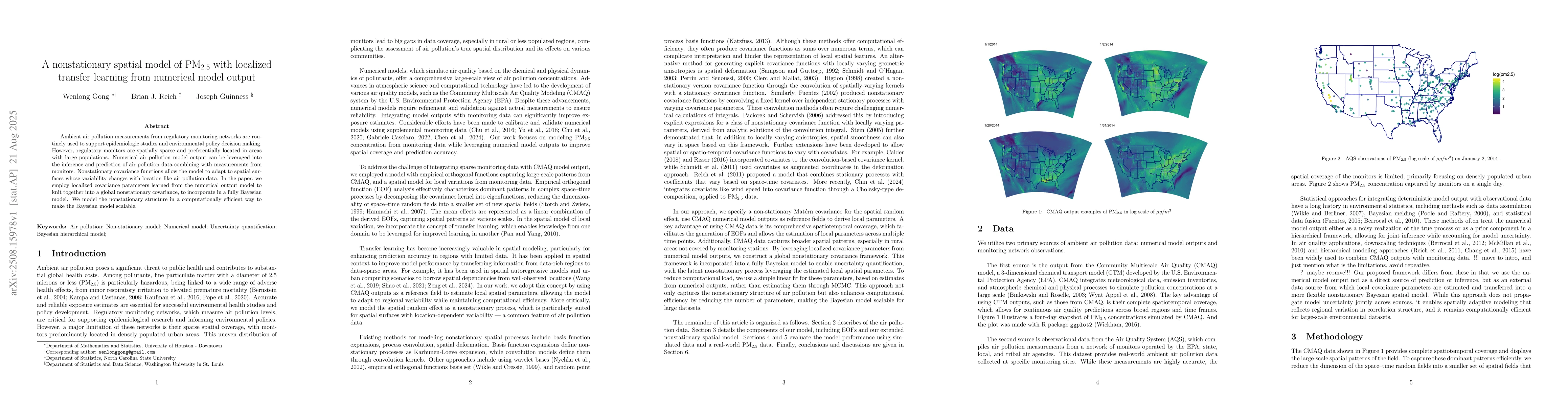 Ambient air pollution measurements from regulatory monitoring networks are routinely used to support epidemiologic studies and environmental policy decision making. However, regulatory monitors are spatially sparse and preferentially located in areas with large populations. Numerical air pollution model output can be leveraged into the inference and prediction of air pollution data combining with measurements from monitors. Nonstationary covariance functions allow the model to adapt to spatial surfaces whose variability changes with location like air pollution data. In the paper, we employ localized covariance parameters learned from the numerical output model to knit together into a global nonstationary covariance, to incorporate in a fully Bayesian model. We model the nonstationary structure in a computationally efficient way to make the Bayesian model scalable.