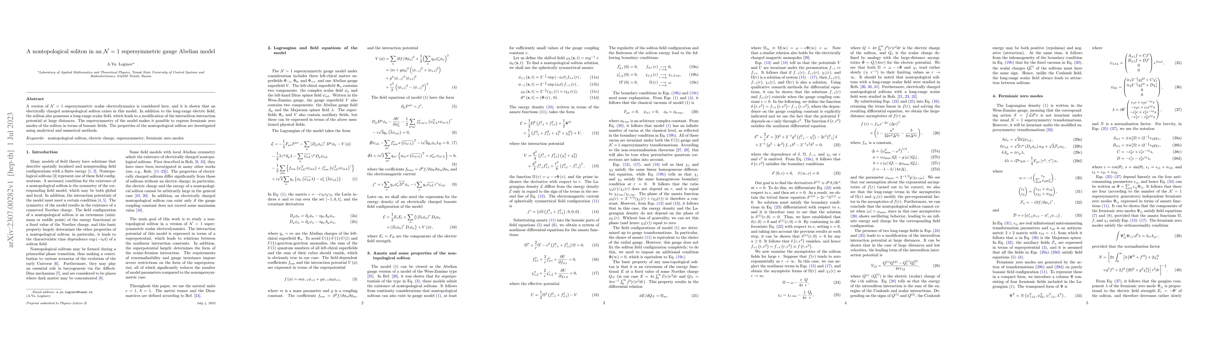 This paper explores an electrically charged nontopological soliton in an $\mathcal{N} = 1$ supersymmetric scalar electrodynamics model, revealing its long-range electric and scalar fields, and modified intersoliton interaction potential. The study utilizes analytical and numerical methods to investigate the soliton's properties, facilitated by the model's supersymmetry.