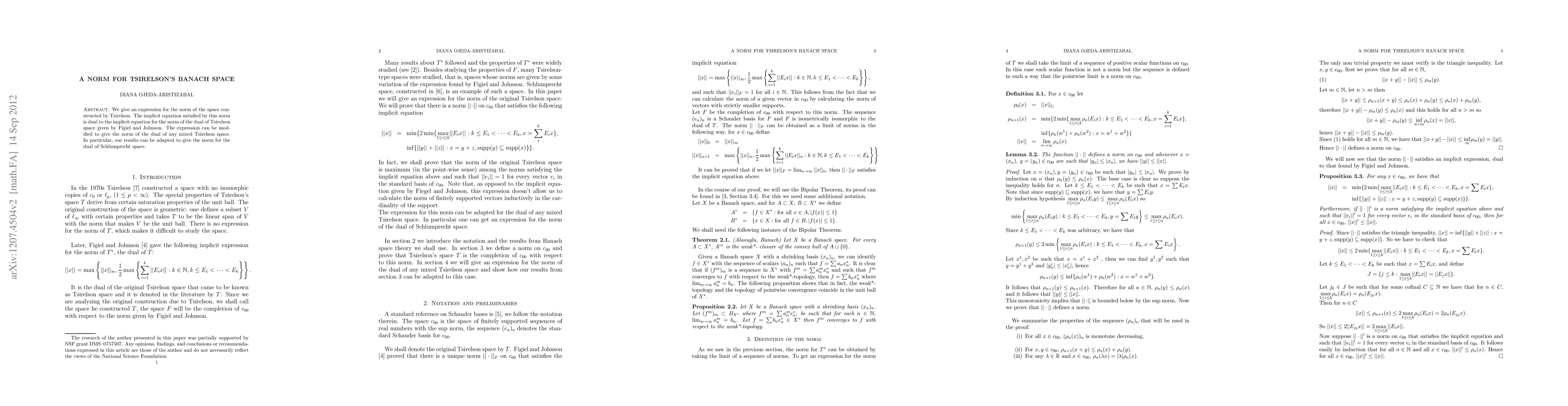 We give an expression for the norm of the space constructed by Tsirelson. The implicit equation satisfied by this norm is dual to the implicit equation for the norm of the dual of Tsirelson space given by Figiel and Johnson. The expression can be modified to give the norm of the dual of any mixed Tsirelson space. In particular, our results can be adapted to give the norm for the dual of Schlumprecht space.
