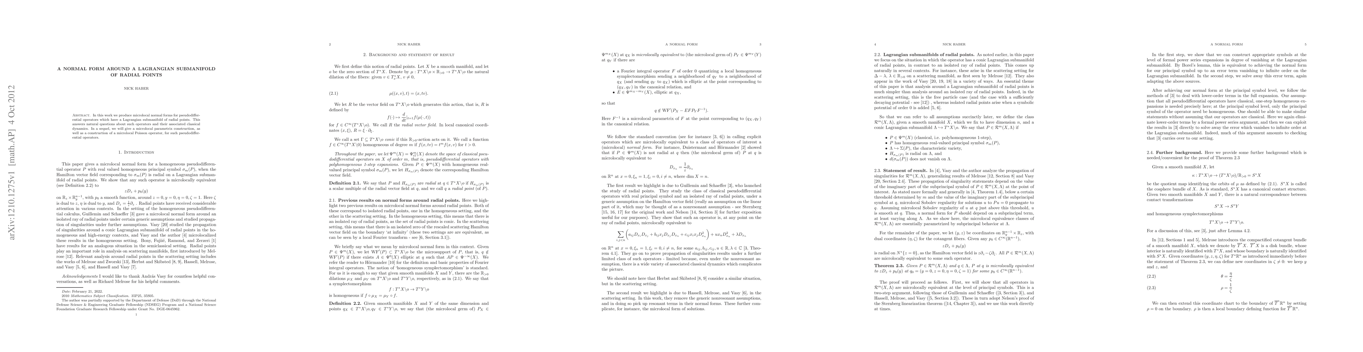 In this work we produce microlocal normal forms for pseudodifferential operators which have a Lagrangian submanifold of radial points. This answers natural questions about such operators and their associated classical dynamics. In a sequel, we will give a microlocal parametrix construction, as well as a construction of a microlocal Poisson operator, for such pseudodifferential operators.