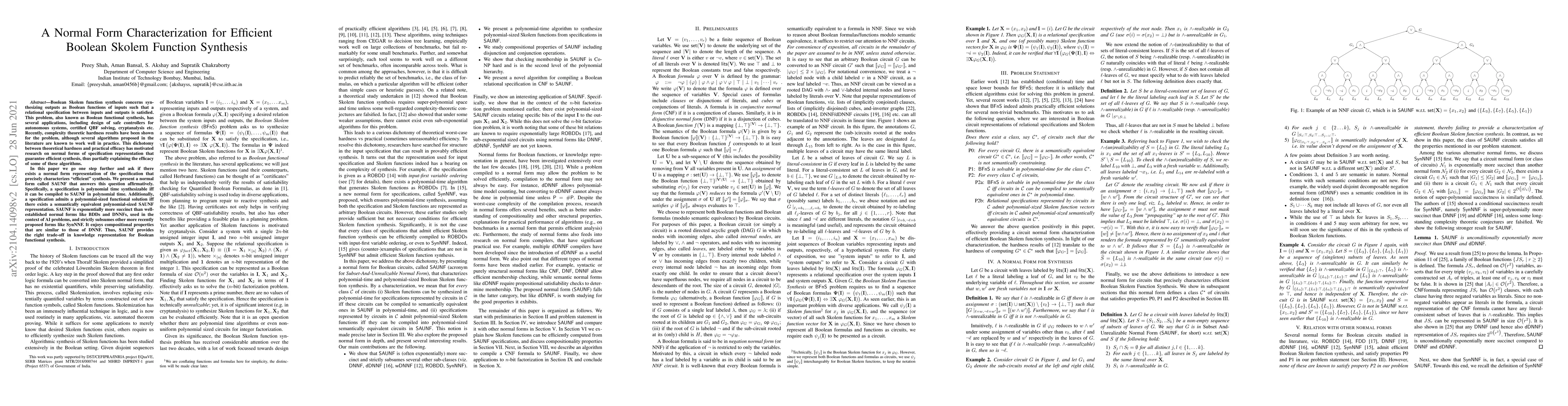 Boolean Skolem function synthesis concerns synthesizing outputs as Boolean functions of inputs such that a relational specification between inputs and outputs is satisfied. This problem, also known as Boolean functional synthesis, has several applications, including design of safe controllers for autonomous systems, certified QBF solving, cryptanalysis etc. Recently, complexity theoretic hardness results have been shown for the problem, although several algorithms proposed in the literature are known to work well in practice. This dichotomy between theoretical hardness and practical efficacy has motivated the research into normal forms or representations of input specifications that permit efficient synthesis, thus explaining perhaps the efficacy of these algorithms. In this paper we go one step beyond this and ask if there exists a normal form representation that can in fact precisely characterize "efficient" synthesis. We present a normal form called SAUNF that precisely characterizes tractable synthesis in the following sense: a specification is polynomial time synthesizable iff it can be compiled to SAUNF in polynomial time. Additionally, a specification admits a polynomial-sized functional solution iff there exists a semantically equivalent polynomial-sized SAUNF representation. SAUNF is exponentially more succinct than well-established normal forms like BDDs and DNNFs, used in the context of AI problems, and strictly subsumes other more recently proposed forms like SynNNF. It enjoys compositional properties that are similar to those of DNNF. Thus, SAUNF provides the right trade-off in knowledge representation for Boolean functional synthesis.