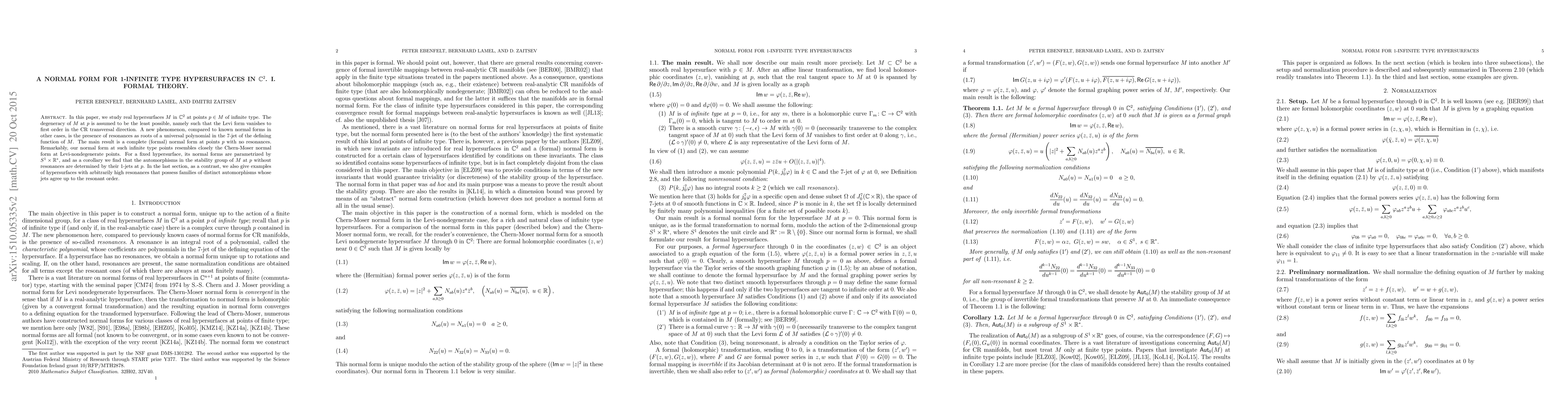 Researchers develop a formal normal form for real hypersurfaces in C^2 at points of infinite type, finding that these forms resemble the Chern-Moser normal form at non-degenerate points, with automorphisms determined by their 1-jets.