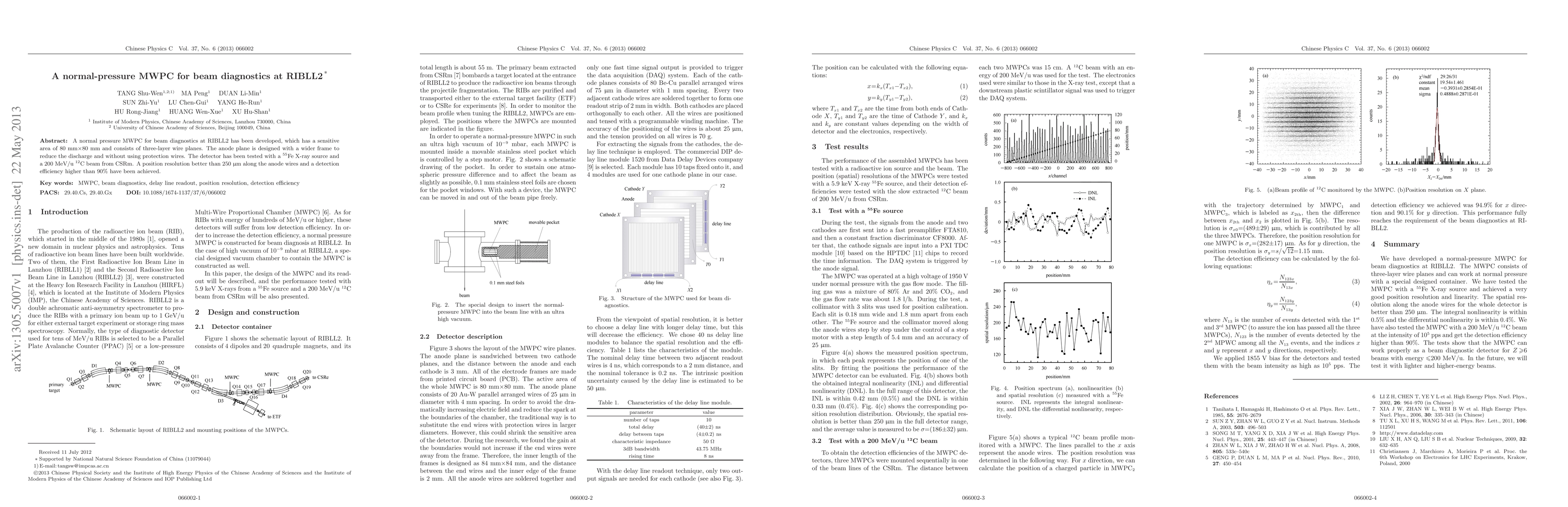 A normal-pressure Multi-Wire Proportional Chamber (MWPC) with a 80 mm$\times$80 mm sensitive area was developed for beam diagnostics at RIBLL2. It achieved a position resolution of better than 250 $\upmu$m and a detection efficiency higher than 90%.
