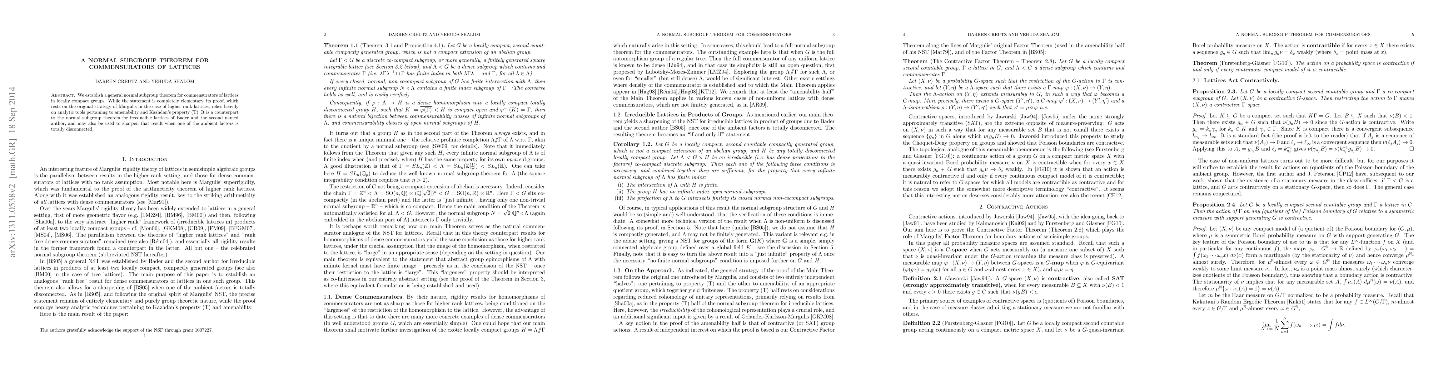 The paper presents a normal subgroup theorem for the commensurators of lattices in locally compact groups, employing analytic tools like amenability and property (T). This extends the prior work of Bader and the second author on irreducible lattices.