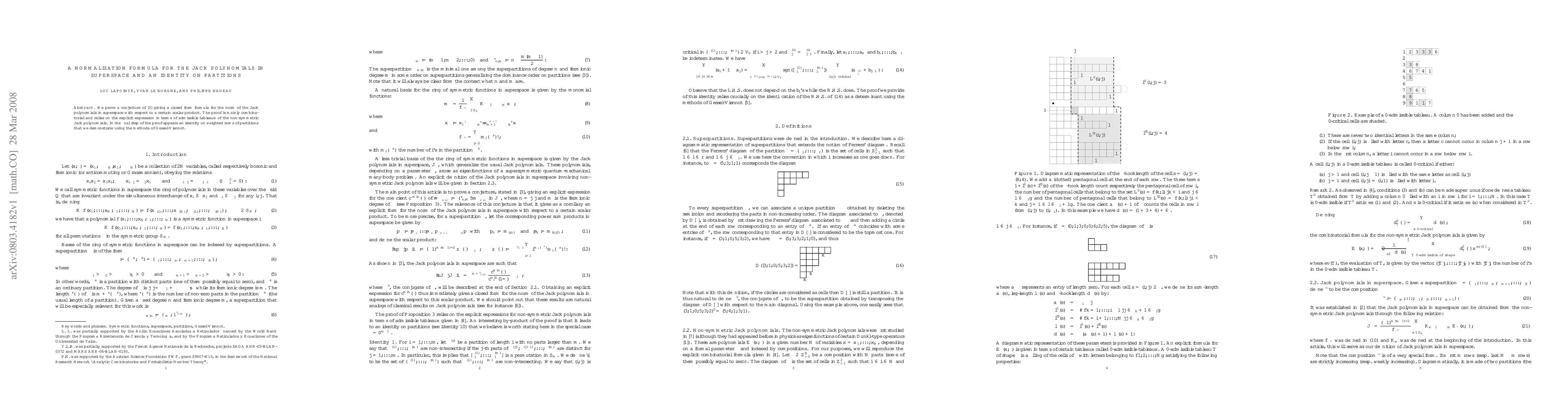 This paper proves a conjectured normalization formula for Jack polynomials in superspace through combinatorial methods, utilizing admissible tableaux, and concludes with a demonstrated identity on weighted sums of partitions via Gessel-Viennot techniques.