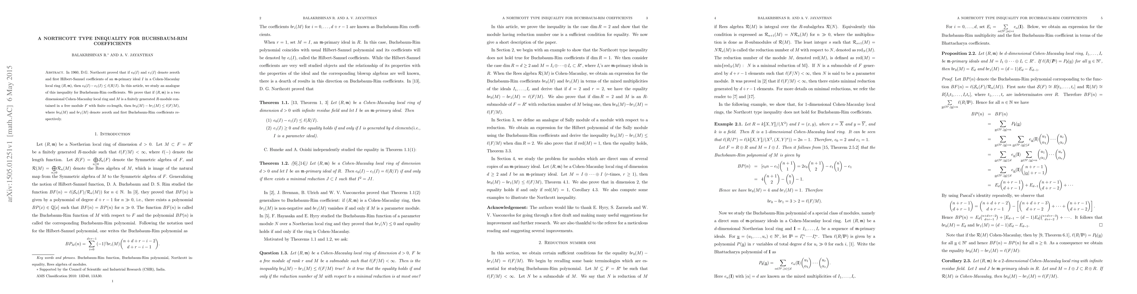 In 1960, D.G. Northcott proved that if $e_0(I)$ and $e_1(I)$ denote zeroth and first Hilbert-Samuel coefficients of an $\mathfrak m$-primary ideal $I$ in a Cohen-Macaulay local ring $(R,\mathfrak m)$, then $e_0(I)-e_1(I)\le \ell (R/I)$. In this article, we study an analogue of this inequality for Buchsbaum-Rim coefficients. We prove that if $(R,\mathfrak m)$ is a two dimensional Cohen-Macaulay local ring and $M$ is a finitely generated $R$-module contained in a free module $F$ with finite co-length, then $br_0(M)-br_1(M)\le \ell (F/M)$, where $br_0(M)$ and $br_1(M$) denote zeroth and first Buchsbaum-Rim coefficients respectively.