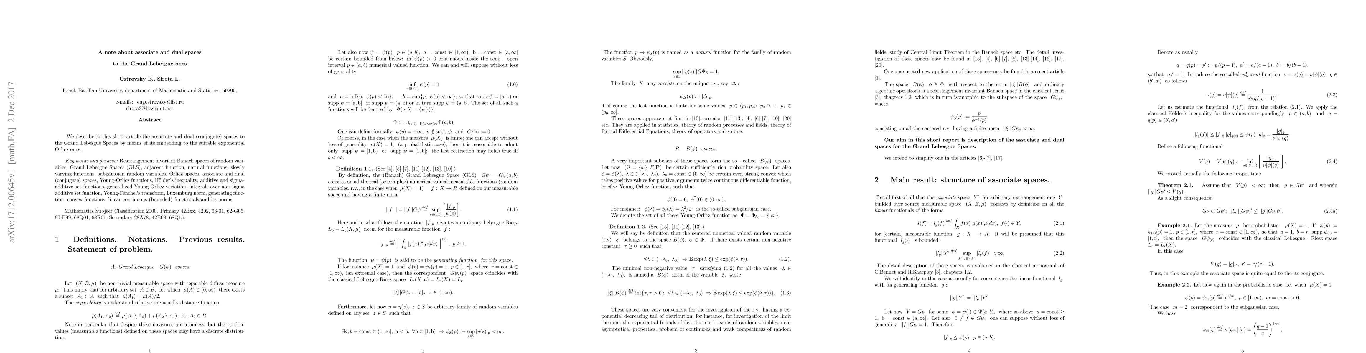 This paper explores the associate and dual spaces related to Grand Lebesgue spaces, linking them through embeddings to appropriate exponential Orlicz spaces. The focus is on the structural relationships and properties of these functional spaces.