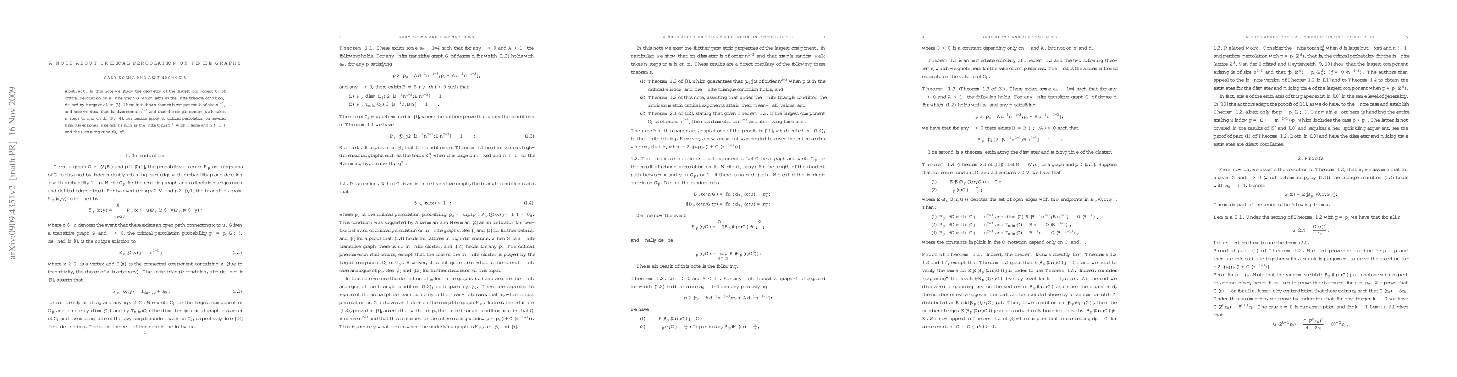 This paper investigates the geometry of the largest component C_1 in critical percolation on finite graphs satisfying the finite triangle condition, showing its diameter is n^{1/3} and that simple random walk requires n steps to mix on it. Results extend to high-dimensional finite graphs like the finite torus Z_n^d and the Hamming cube {0,1}^n.