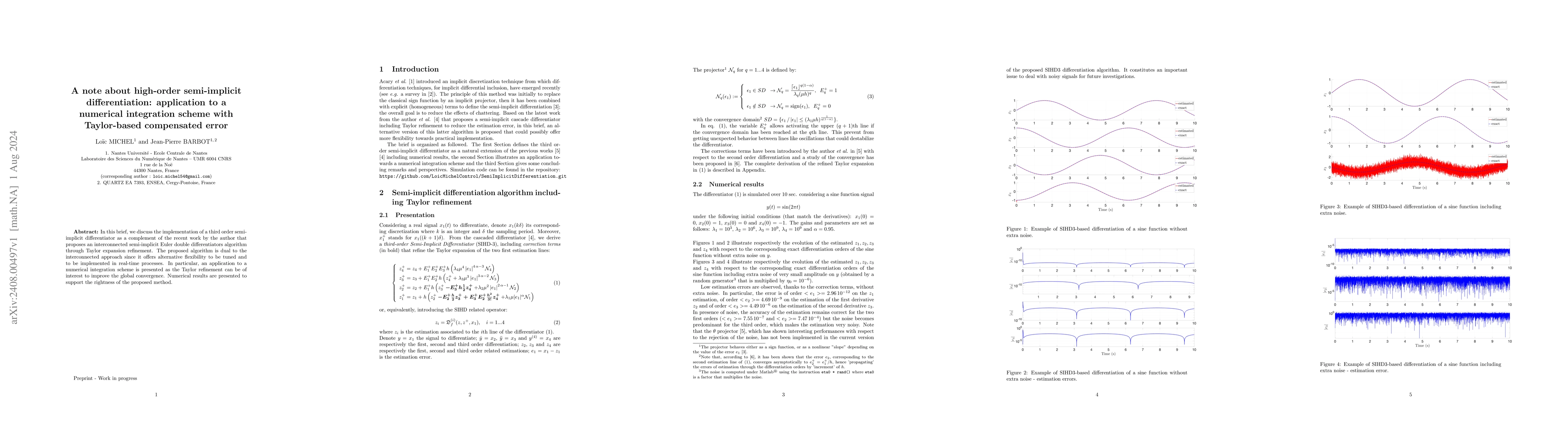 In this brief, we discuss the implementation of a third order semi-implicit differentiator as a complement of the recent work by the author that proposes an interconnected semi-implicit Euler double differentiators algorithm through Taylor expansion refinement. The proposed algorithm is dual to the interconnected approach since it offers alternative flexibility to be tuned and to be implemented in real-time processes. In particular, an application to a numerical integration scheme is presented as the Taylor refinement can be of interest to improve the global convergence. Numerical results are presented to support the rightness of the proposed method.