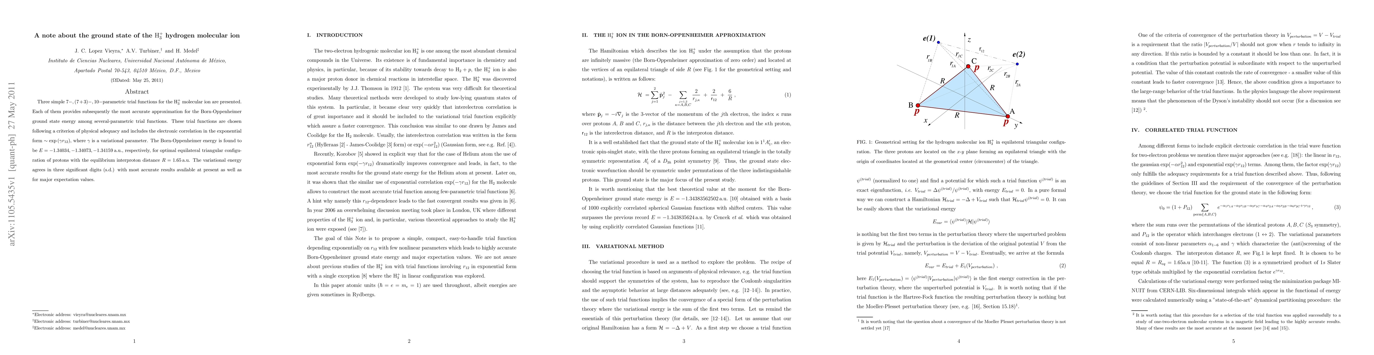 Researchers have developed new trial functions to approximate the ground state energy of the H3+ hydrogen molecular ion, achieving accuracy comparable to current most accurate results.