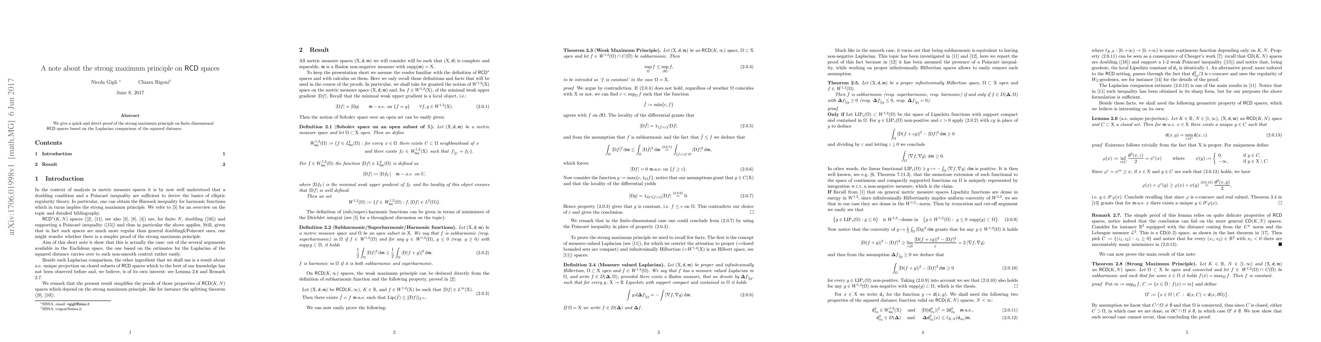 The paper establishes a direct proof of the strong maximum principle on finite-dimensional RCD spaces, utilizing the measure-valued Laplacian concept and equivalence between subharmonicity and non-negative Laplacian.