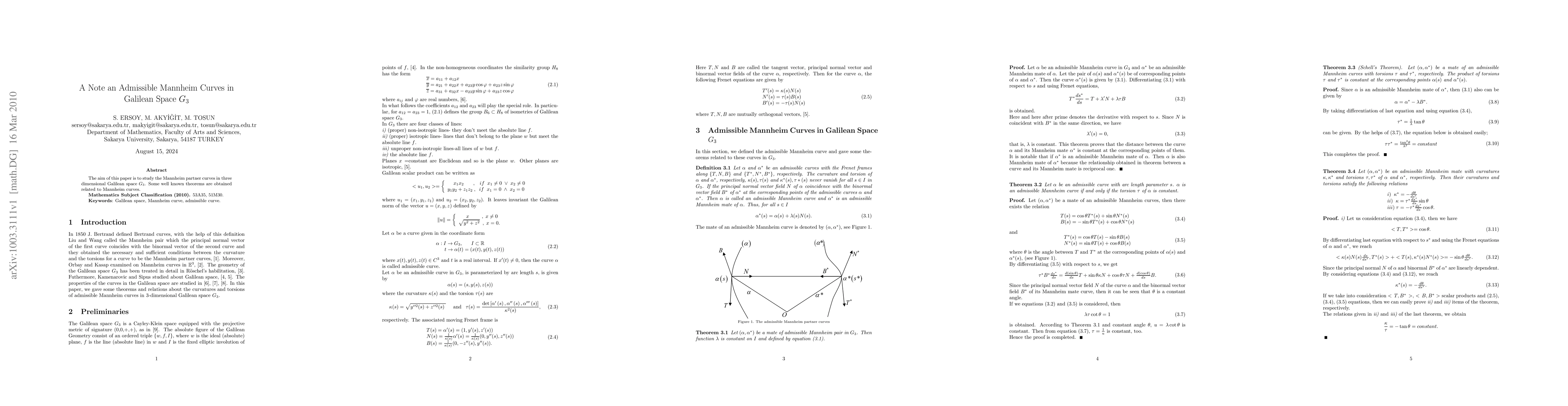 Summary: This paper investigates Mannheim partner curves in three-dimensional Galilean space, deriving new theorems and establishing properties specific to these curves within this unique mathematical framework.