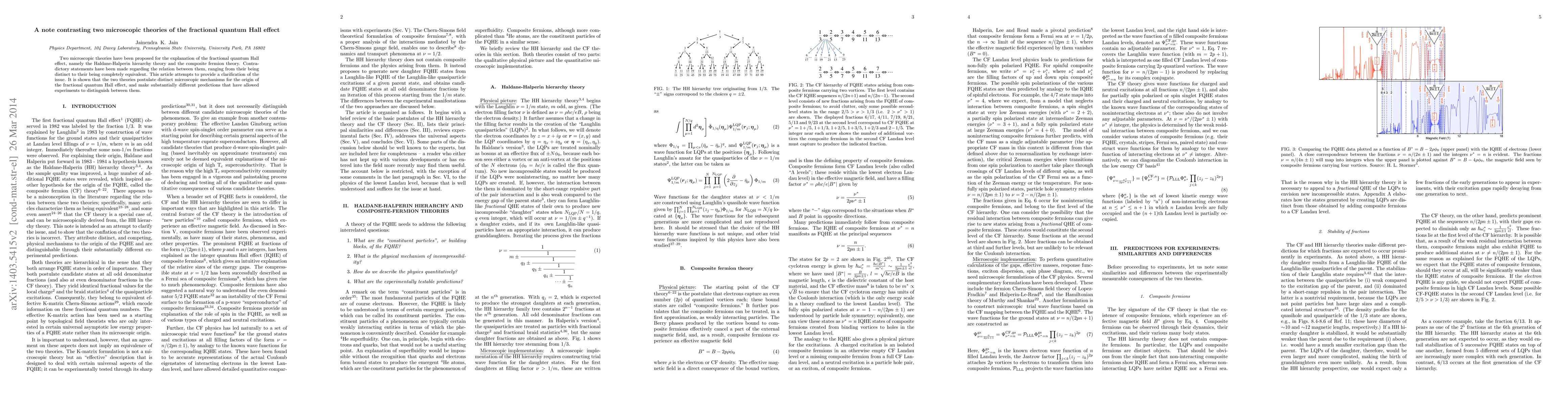 This paper contrasts the Haldane-Halperin hierarchy theory and the composite fermion theory, both proposed to explain the fractional quantum Hall effect. It clarifies that these theories propose distinct microscopic mechanisms and make different predictions, allowing experimental differentiation.