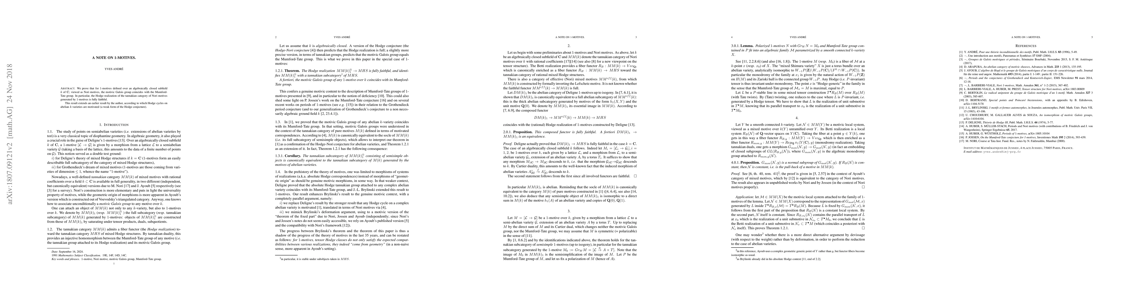 This paper demonstrates that for $1$-motives defined over an algebraically closed subfield of $\C$, the motivic Galois group coincides with the Mumford-Tate group, confirming the full faithfulness of the Hodge realization in the tannakian category of Nori motives generated by $1$-motives.
