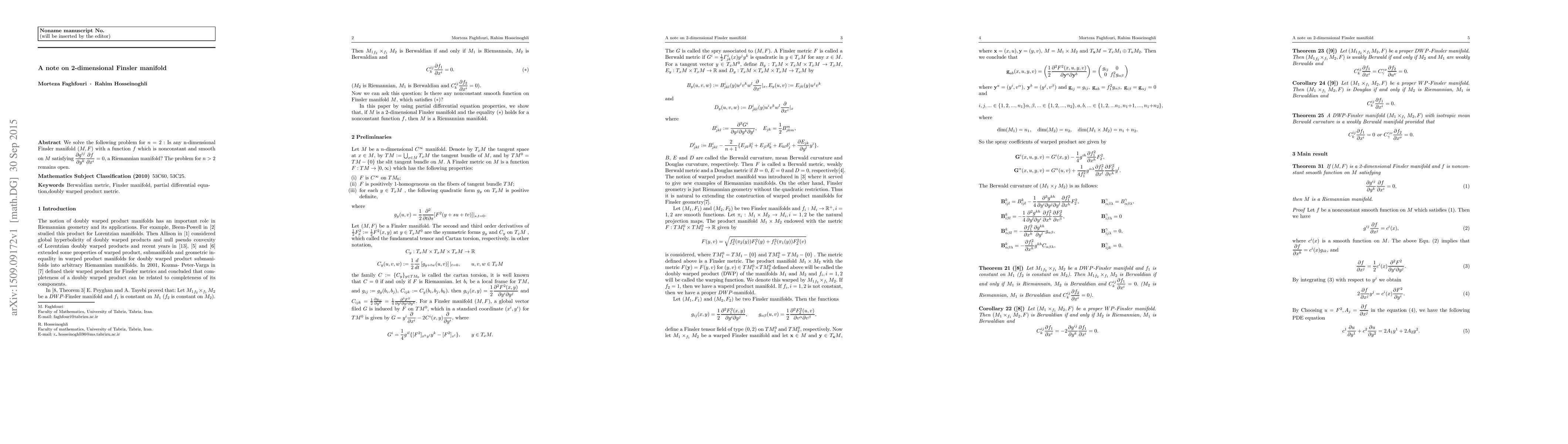 Researchers solved a long-standing problem in geometry by showing that a specific type of Finsler manifold with certain properties is actually a Riemannian manifold. This breakthrough sheds new light on the relationship between Finsler manifolds and Riemannian manifolds.